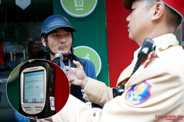 Trao đổi với PV Báo CAND, Đại úy Phùng Tuấn Anh (cán bộ Đội CSGT số 3) cho biết, việc kiểm tra được thực hiện đúng theo quy trình, quy định. Khi phát hiện trường hợp có biểu hiện vi phạm sẽ tiến hành test nhanh định tính bằng máy đo nồng độ cồn. Tài xế chỉ cần thổi một lượng hơi nhỏ vào phễu kiểm tra, máy sẽ báo kết quả có phát hiện cồn hay không.