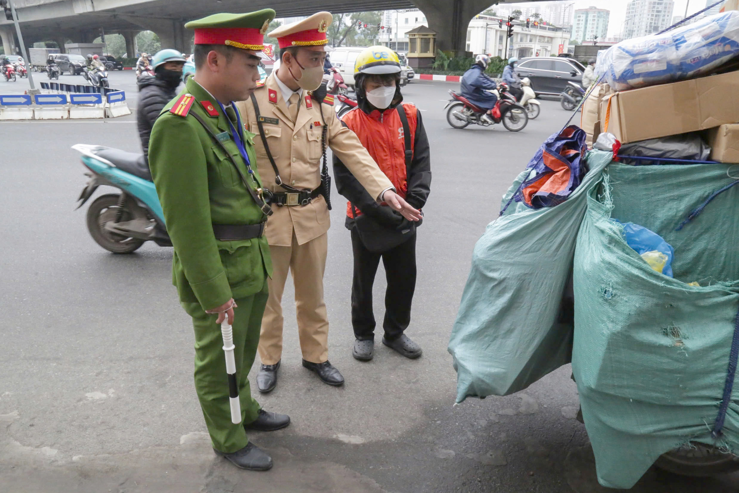 Trưa 22/1, tổ công tác của Đội CSGT đường bộ số 7 (Phòng CSGT Công an TP Hà Nội) phối hợp với Đội điều khiển giao thông sử dụng hệ thống camera AI để soi chiếu, xử lý các trường hợp shipper chở hàng hóa cồng kềnh che khuất biển kiểm soát.