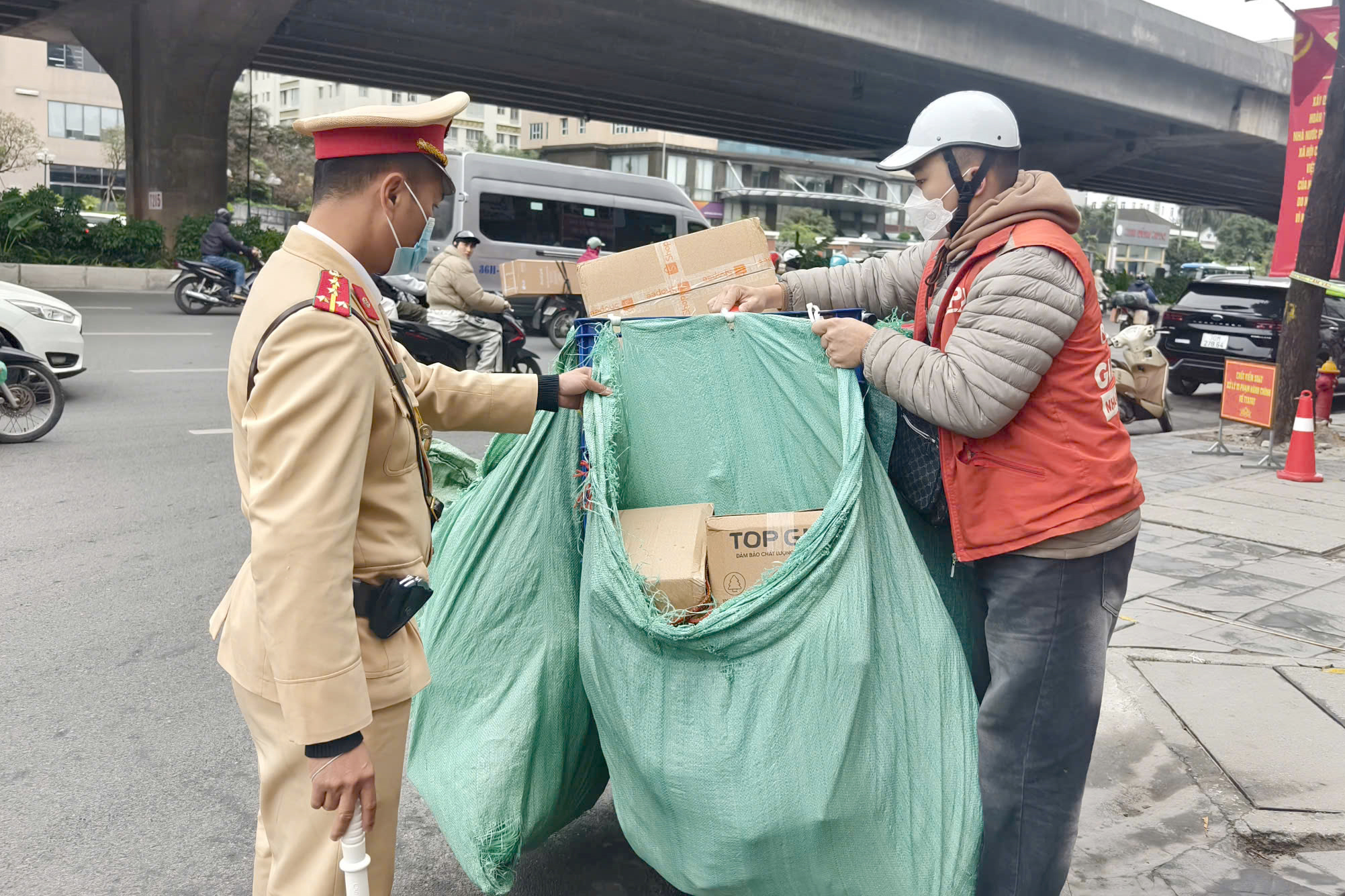 Khoảng 9h15, từ hình ảnh camera AI ghi nhận một shipper chở nhiều bao tải hàng hóa che kín biển số xe máy xuất hiện tại ngã tư Khuất Duy Tiến - Lê Văn Lương, cán bộ Đội điều khiển giao thông lập tức thông báo cho đại úy Trần Trung Tuyên xử lý.