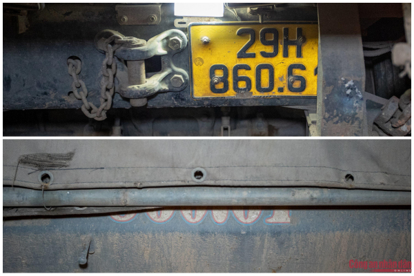 Qua kiểm tra, bằng mắt thường có thể thấy phần biển số phía sau và hai bên thành xe tải rất khó quan sát. Theo lý giải của tài xế cũng như chủ phương tiện khi mua xe theo thiết kế của nhà sản xuất chỉ có thể gắn biển số lệch hẳn vào 1 bên chứ không có vị trí nào khác để gắn dễ quan sát hơn.