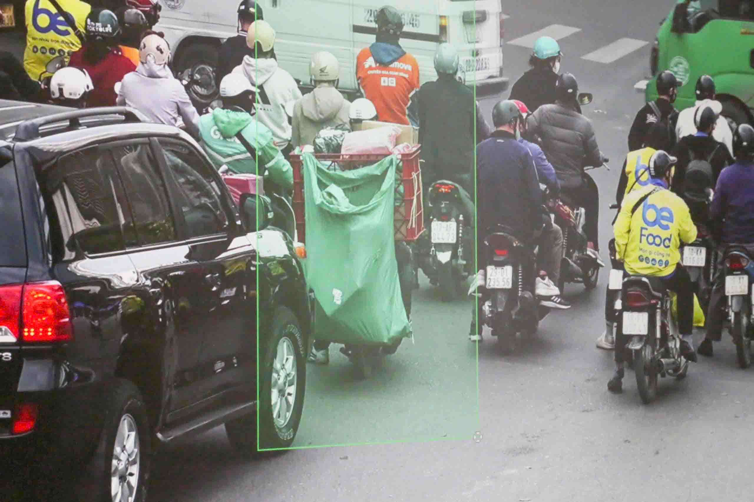 Hình ảnh ghi nhận từ camera AI cho thấy, nhiều shipper chở hàng hóa cồng kềnh, chằng buộc phía sau xe máy và che lấp hoàn toàn biển số. Các hình ảnh được ghi nhận rõ nét, làm căn cứ xác minh, xử lý vi phạm.