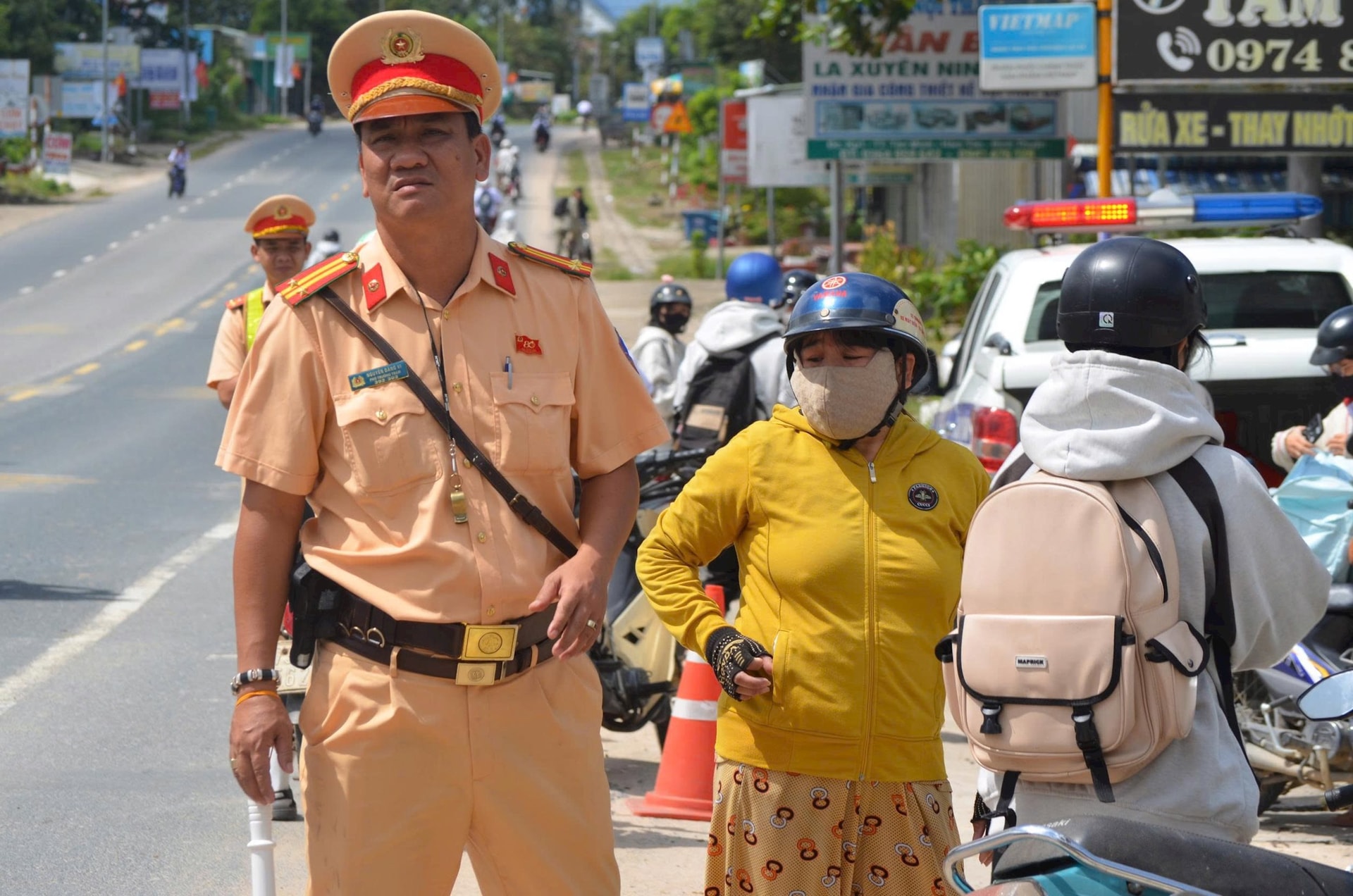Trung tá Nguyễn Đăng Vi, Phó TrưởngTrạm CSGT Hàm Tân tại điểm kiểm soát