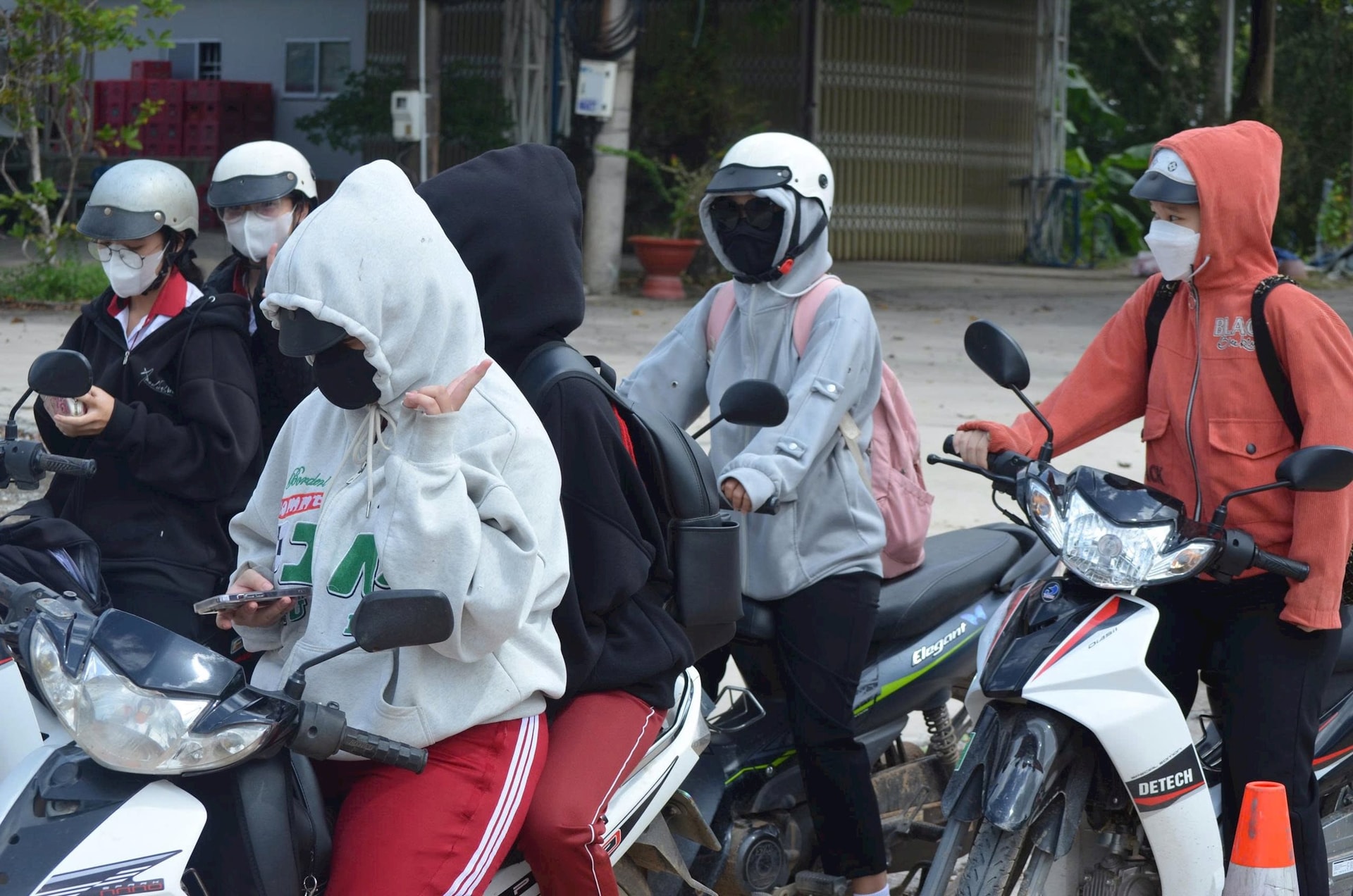 Học sinh trong giờ tan học lưu thông đông đúc trên quốc lộ 1A