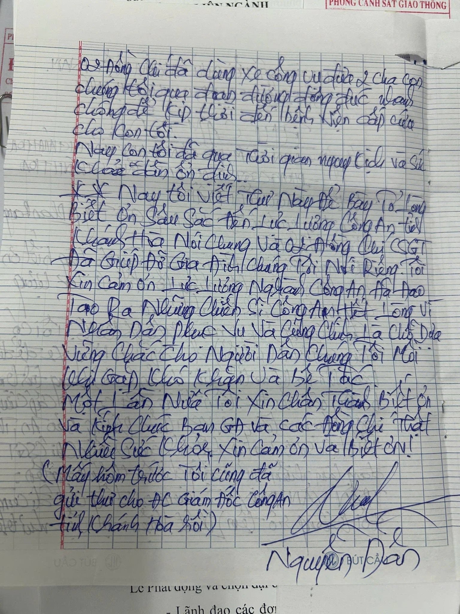 Trong thư, ông Dẫn bày tỏ sự xúc động và biết ơn sâu sắc trước tinh thần trách nhiệm, tận tình giúp đỡ của các chiến sĩ CSGT.