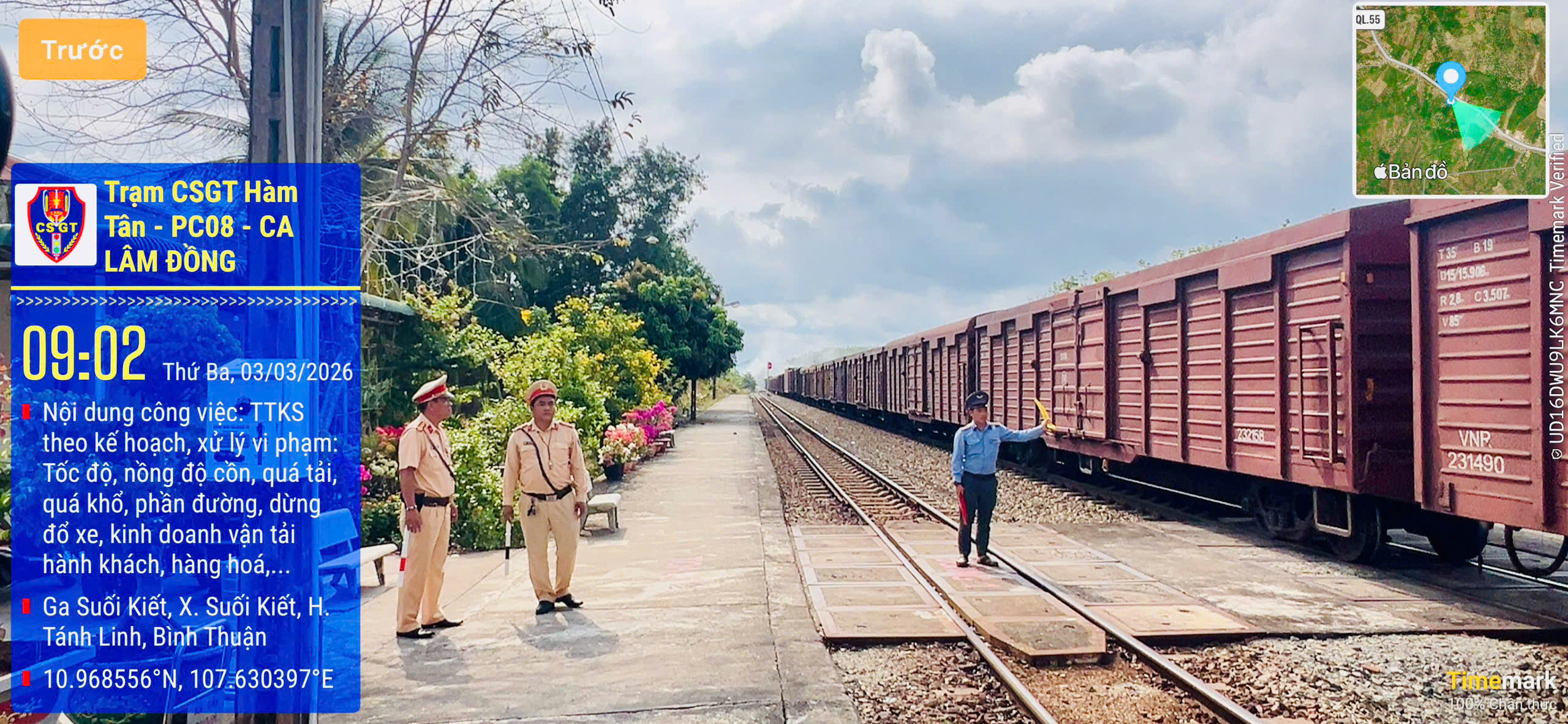 Sáng 3-3, Trạm CSGT Hàm Tân thuộc Phòng CSGT Công an tỉnh Lâm Đồng đã thành lập tổ công tác tiến hành kiểm tra nồng độ cồn đột xuất đối với cán bộ, nhân viên ga Suối Kiết tại Km 1603, đoạn qua xã Suối Kiết (tỉnh Lâm Đồng).