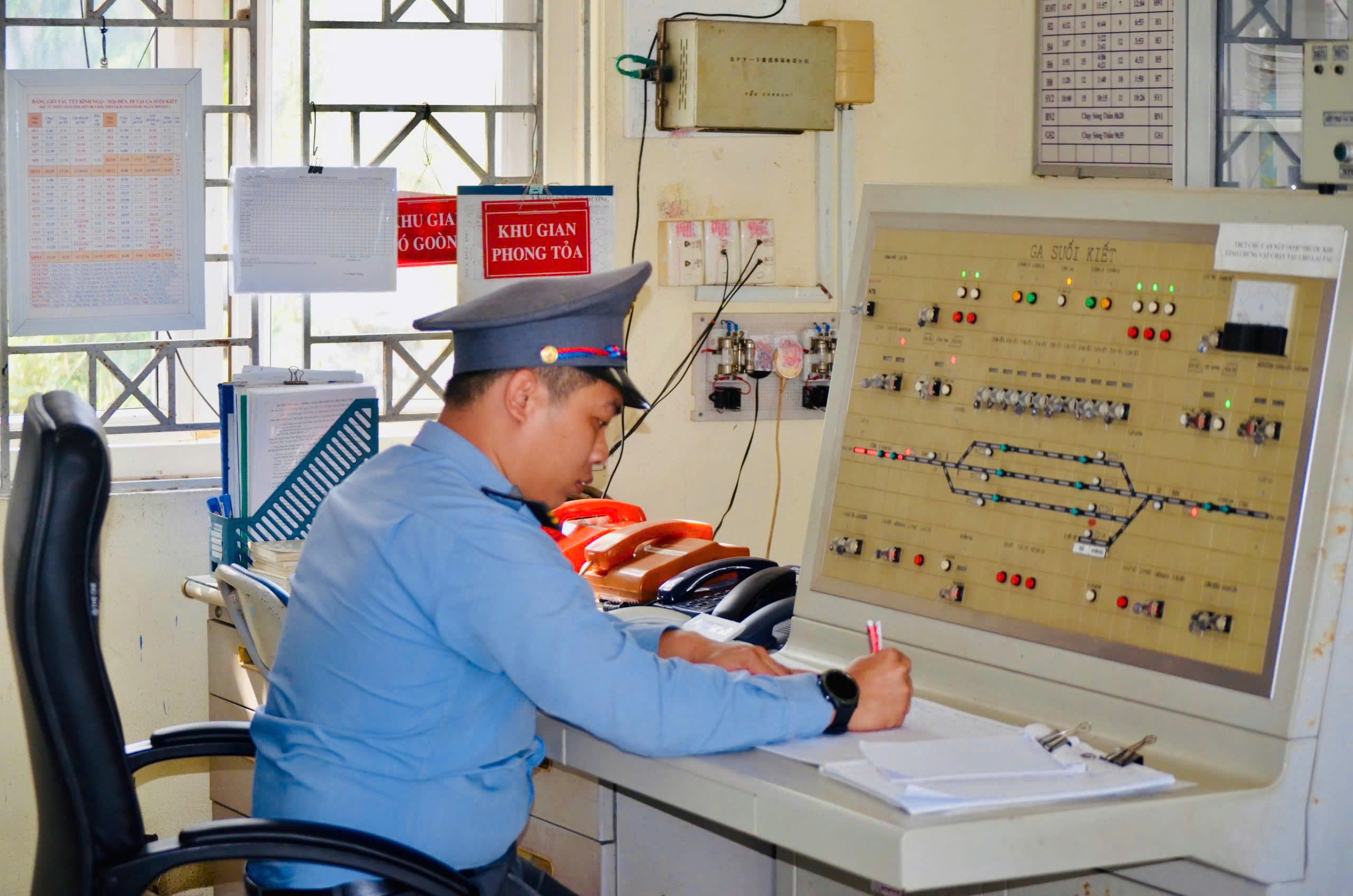 Nhân viên ghi nhật ký tàu sắp chạy qua ga.