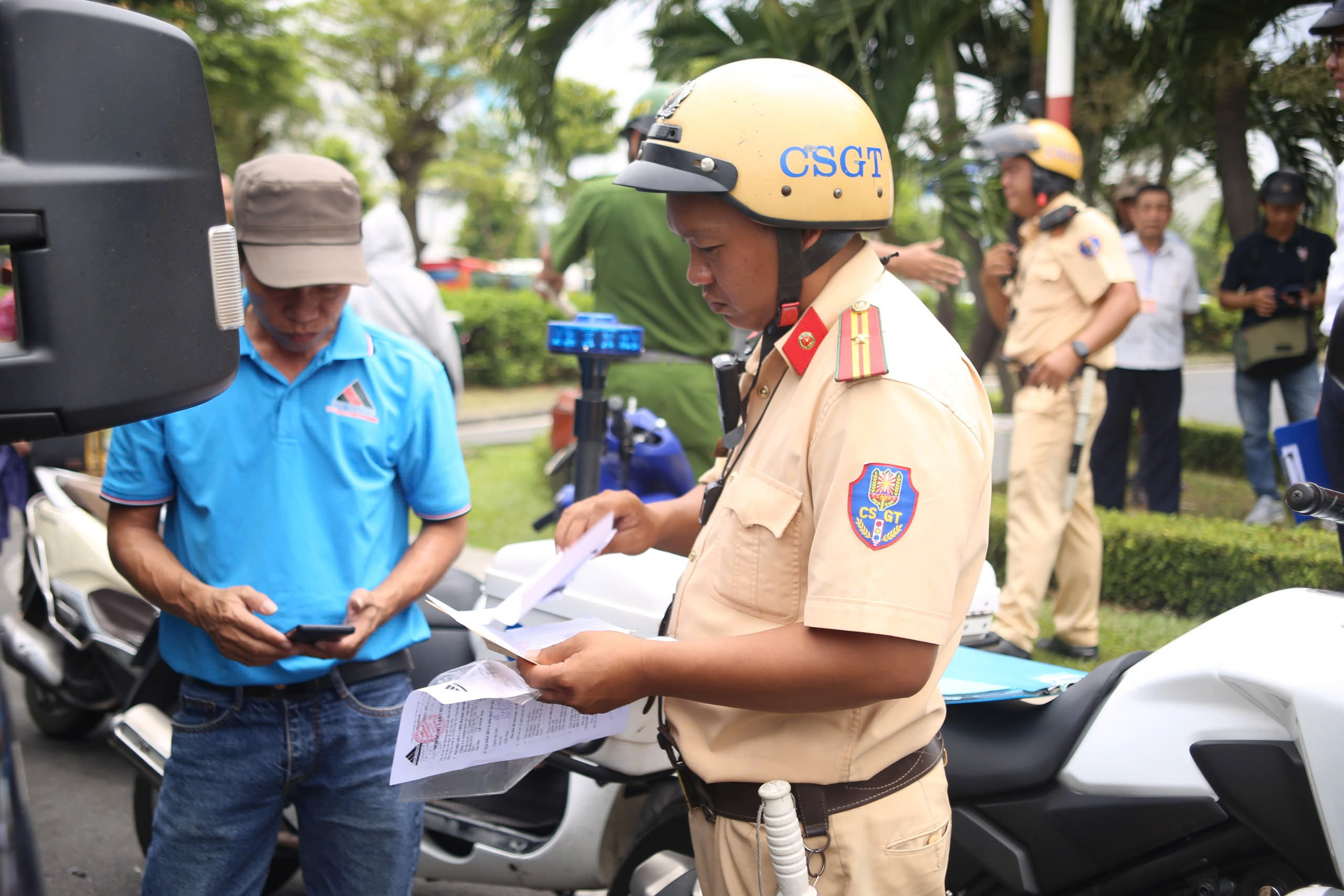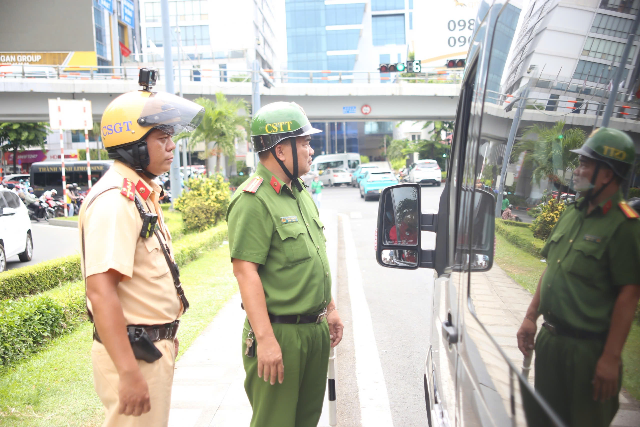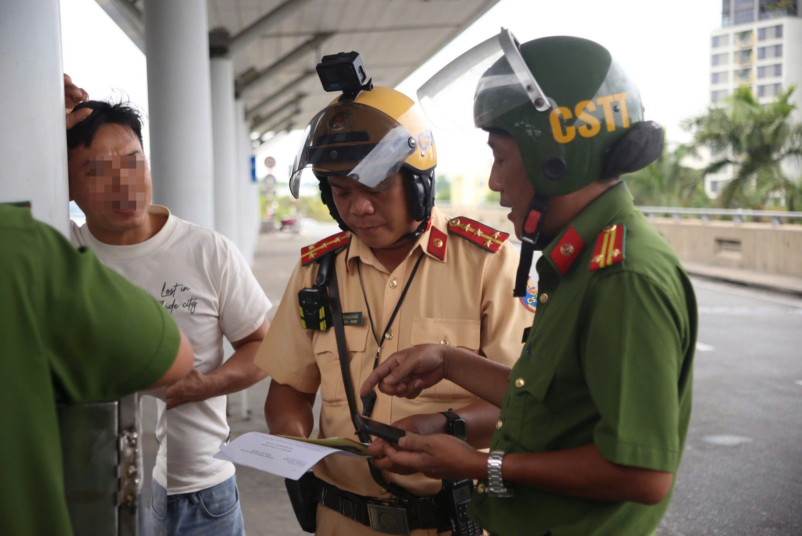 Ngày 23-4, Đội CSGT Tân Sơn Nhất, Phòng CSGT (PC08), Công an TP.HCM phối hợp Đồn Công an Cảng Hàng không quốc tế Tân Sơn Nhất tổ chức tuần tra, kiểm soát, xử lý vi phạm trật tự an toàn giao thông trong khu vực sân bay.