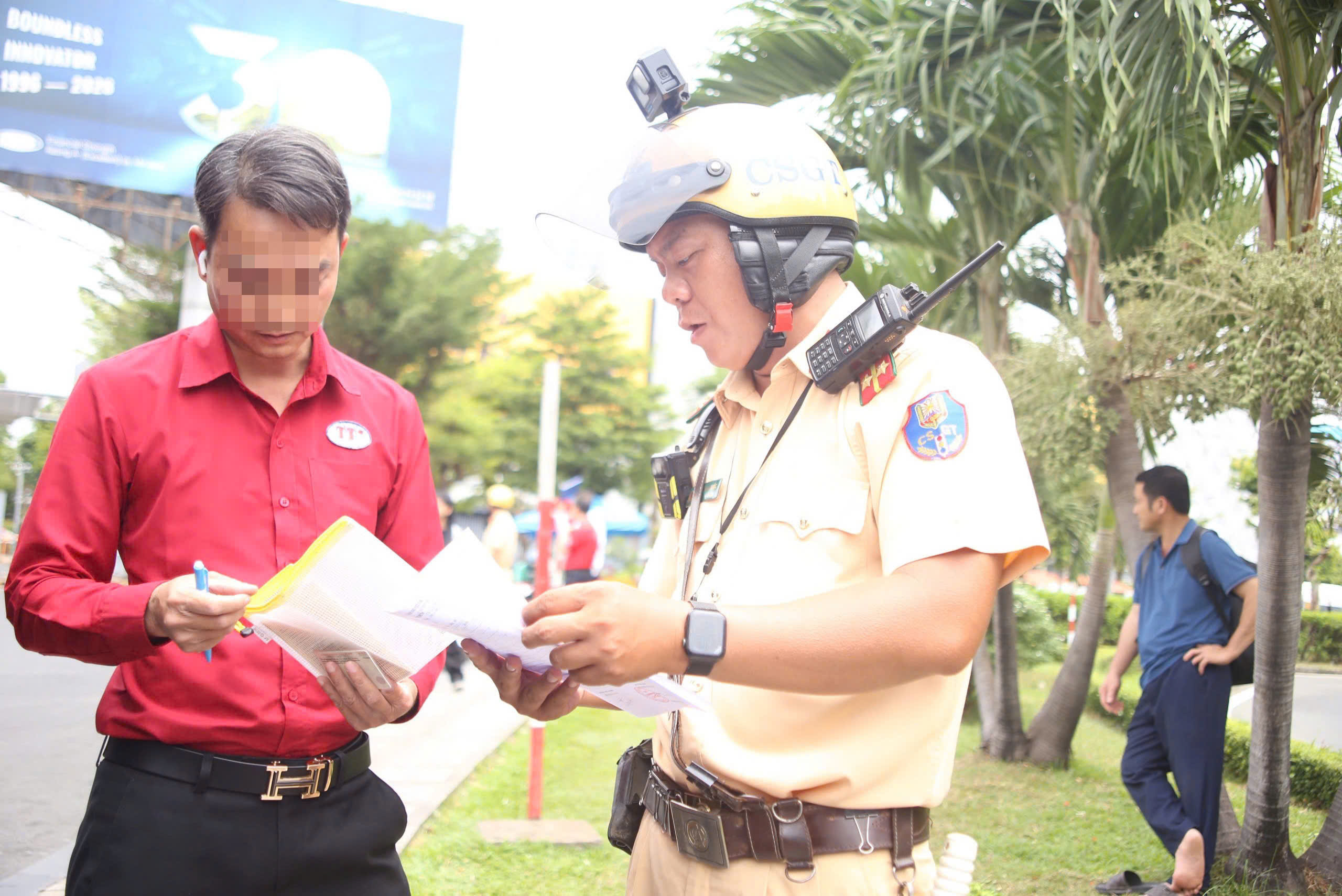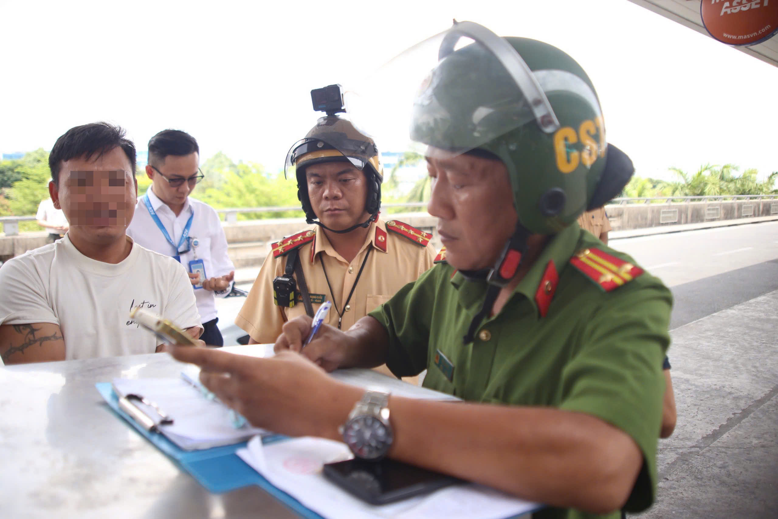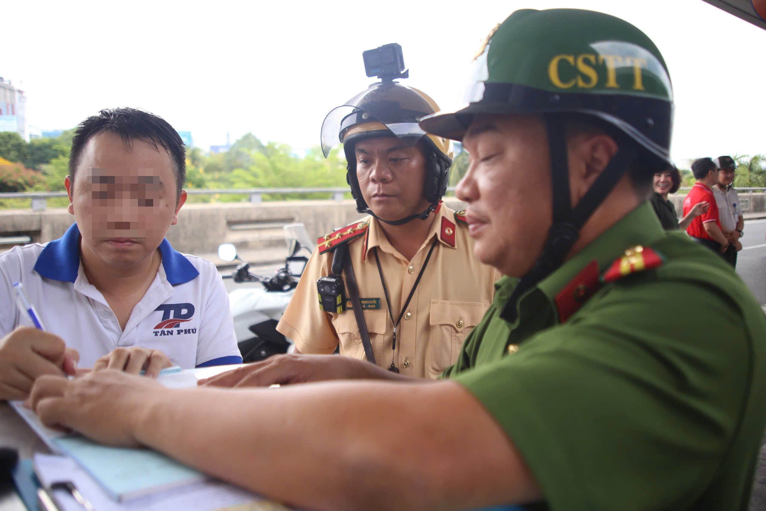 Ngày 23-4, Đội CSGT Tân Sơn Nhất, Phòng CSGT (PC08), Công an TP.HCM phối hợp Đồn Công an Cảng Hàng không quốc tế Tân Sơn Nhất tổ chức tuần tra, kiểm soát, xử lý vi phạm trật tự an toàn giao thông trong khu vực sân bay.