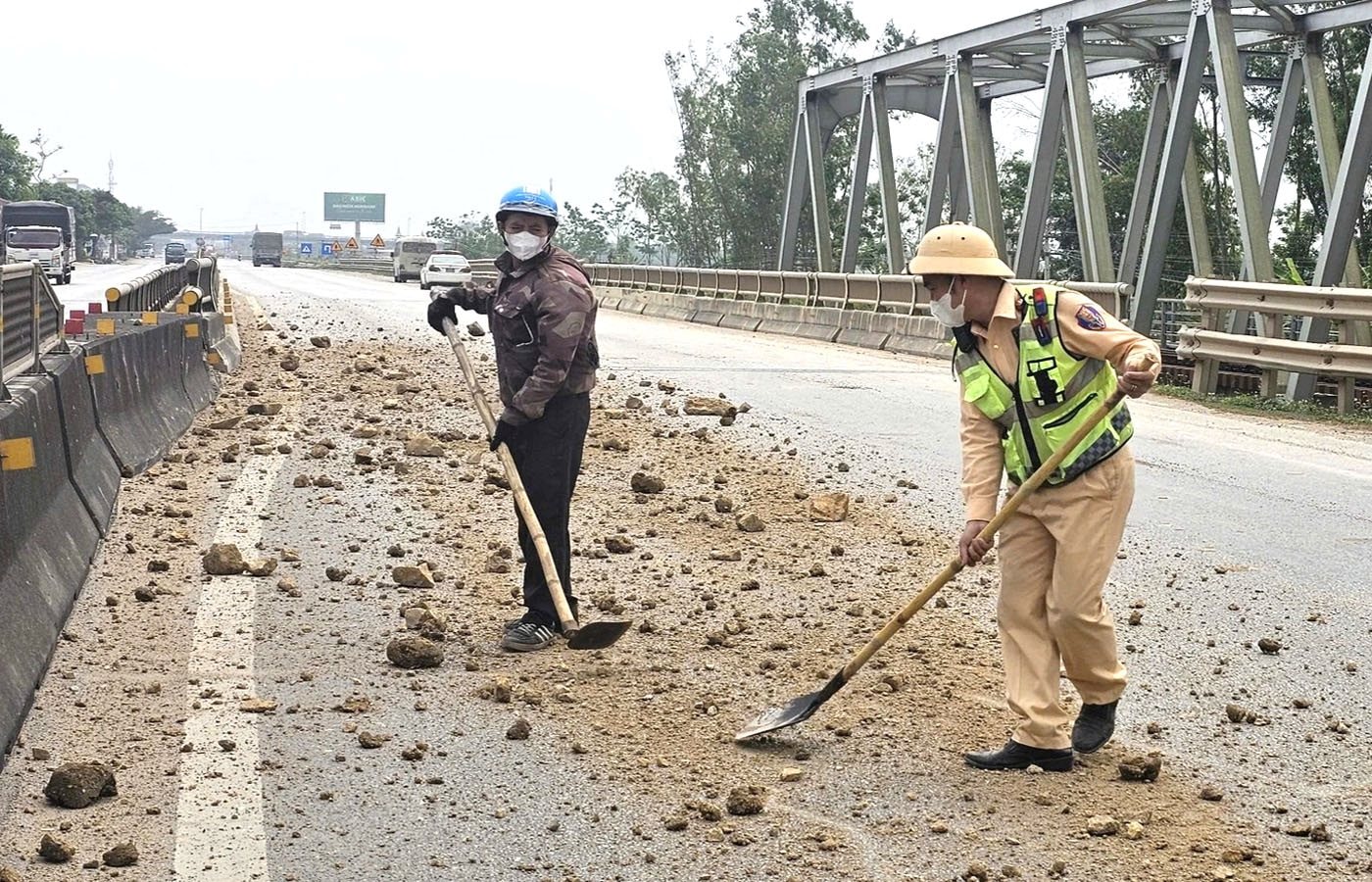 Trước đó, vào khoảng 12h30 cùng ngày, trong quá trình tuần tra kiểm soát tại Km 411+300, đoạn qua xã Hùng Châu, Tổ công tác số 2 phát hiện một lượng lớn đất đá vương vãi giữa lòng đường theo hướng từ Hà Nội vào Nghệ An.