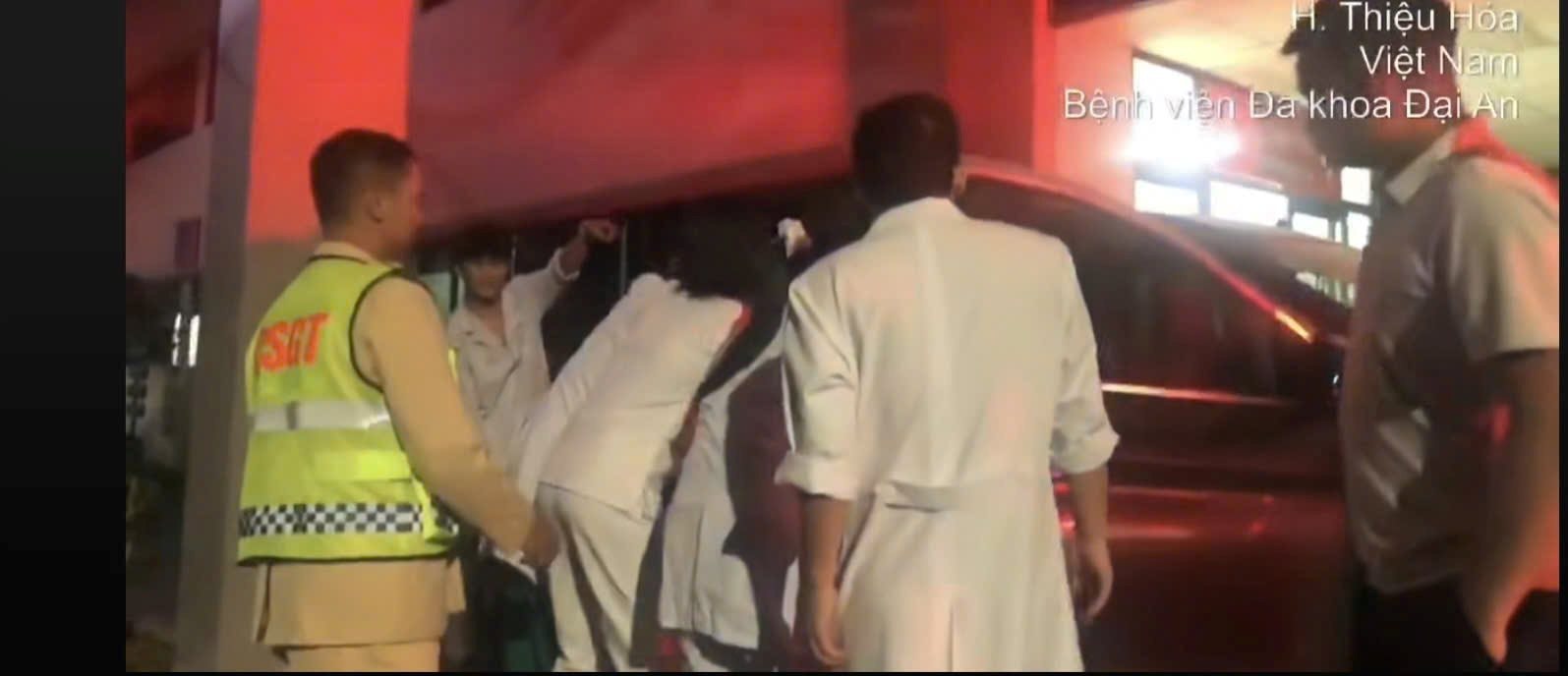 Chiến sĩ CSGT nhanh chóng hỗ trợ nạn nhân cùng phương tiện đến Bệnh viện Đa khoa Đại An cấp cứu. Ảnh cắt từ clip Cục CSGT