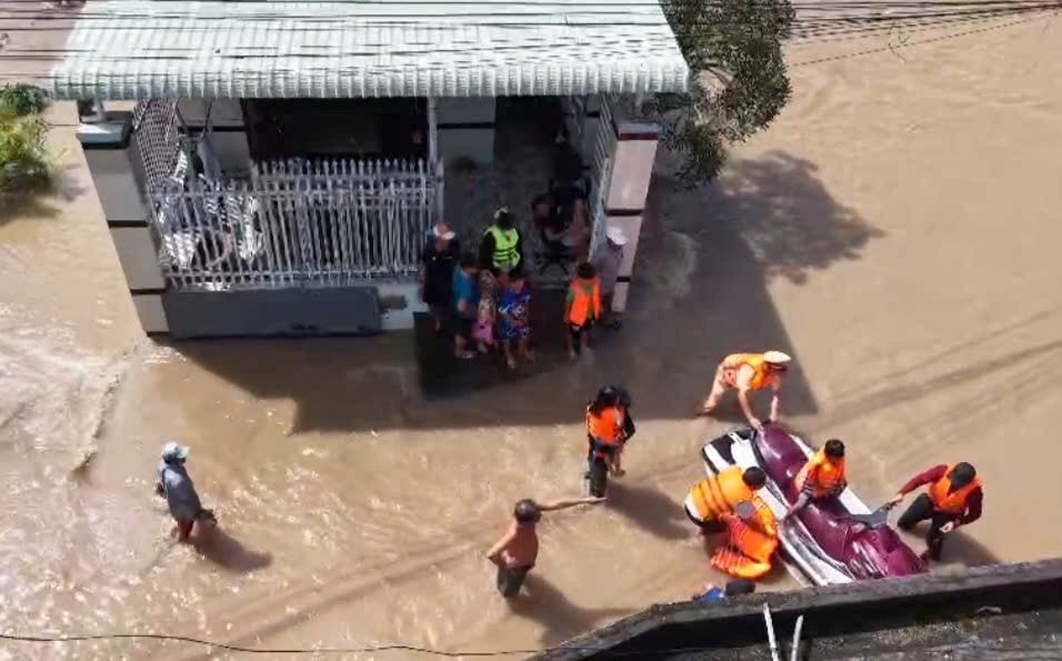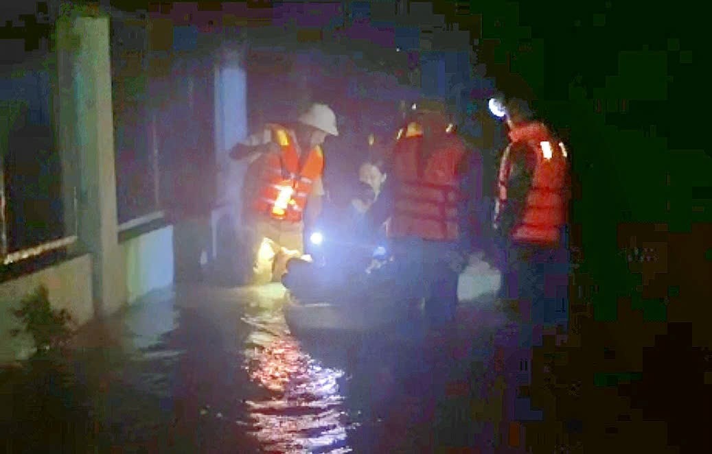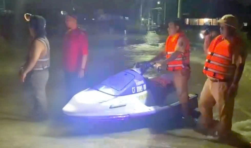 Cảnh sát đường thủy Lâm Đồng không ngại đêm tối đến hỗ trợ người dân ra khỏi vùng ngập lụt an toàn
