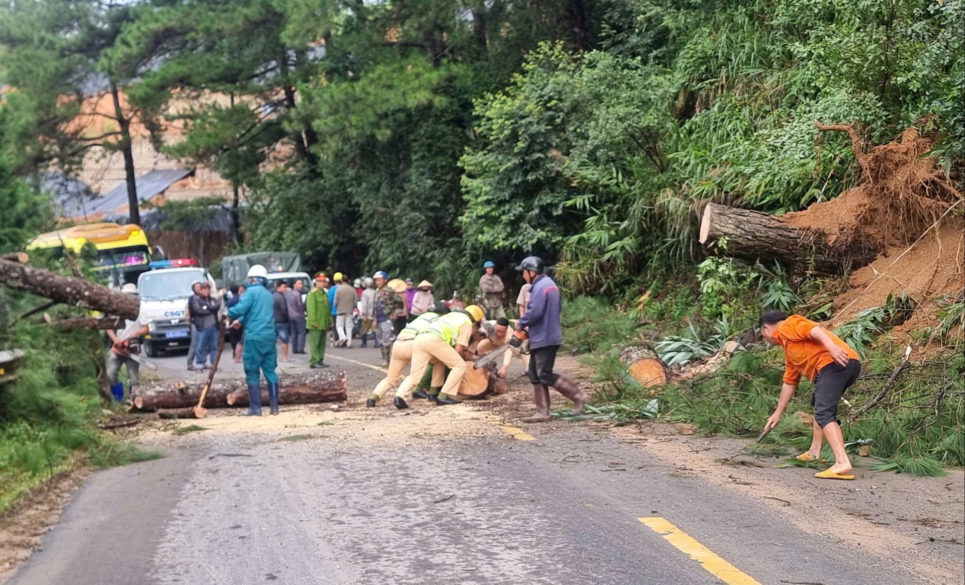 Điển hình, sáng 2/11, trong quá trình tuần tra kiểm soát, Tổ CSGT Eo Gió thuộc Đội CSGT số 1 phát hiện một cây thông cổ thụ cao hơn 20 m bật gốc, chắn ngang Quốc lộ 27 tại Km204+400 (xã D’Ran), gây ách tắc cục bộ. Ngay sau đó, cán bộ, chiến sĩ CSGT đã phối hợp với lực lượng công an xã và người dân dọn dẹp, giải phóng mặt đường, khơi thông giao thông chỉ sau hơn 1 giờ.