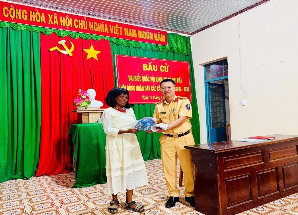 Không chỉ tập trung trong môi trường học đường, công tác tuyên truyền còn được triển khai sâu rộng tại cộng đồng dân cư. Tối 22/3/2026, tại Nhà văn hóa thôn Tân Quang, xã Tân Lập, Trạm CSGT Hàm Tân phối hợp với chính quyền địa phương tổ chức tuyên truyền pháp luật về trật tự, an toàn giao thông cho người dân, chủ yếu là đồng bào dân tộc thiểu số.