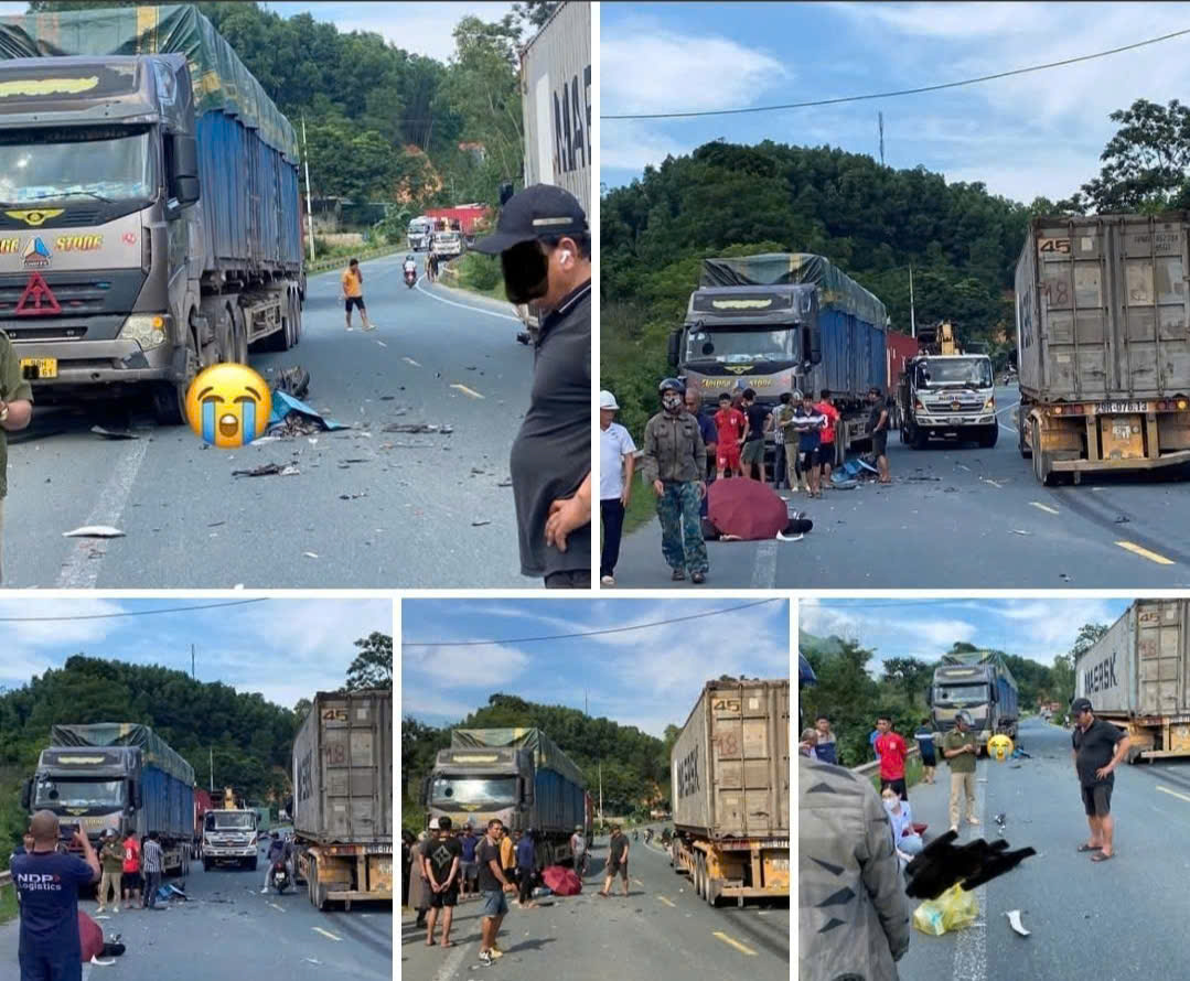 Đúng lúc này, một xe đầu kéo khác lưu thông cùng chiều phía sau lao tới, gây nên vụ tai nạn thương tâm.