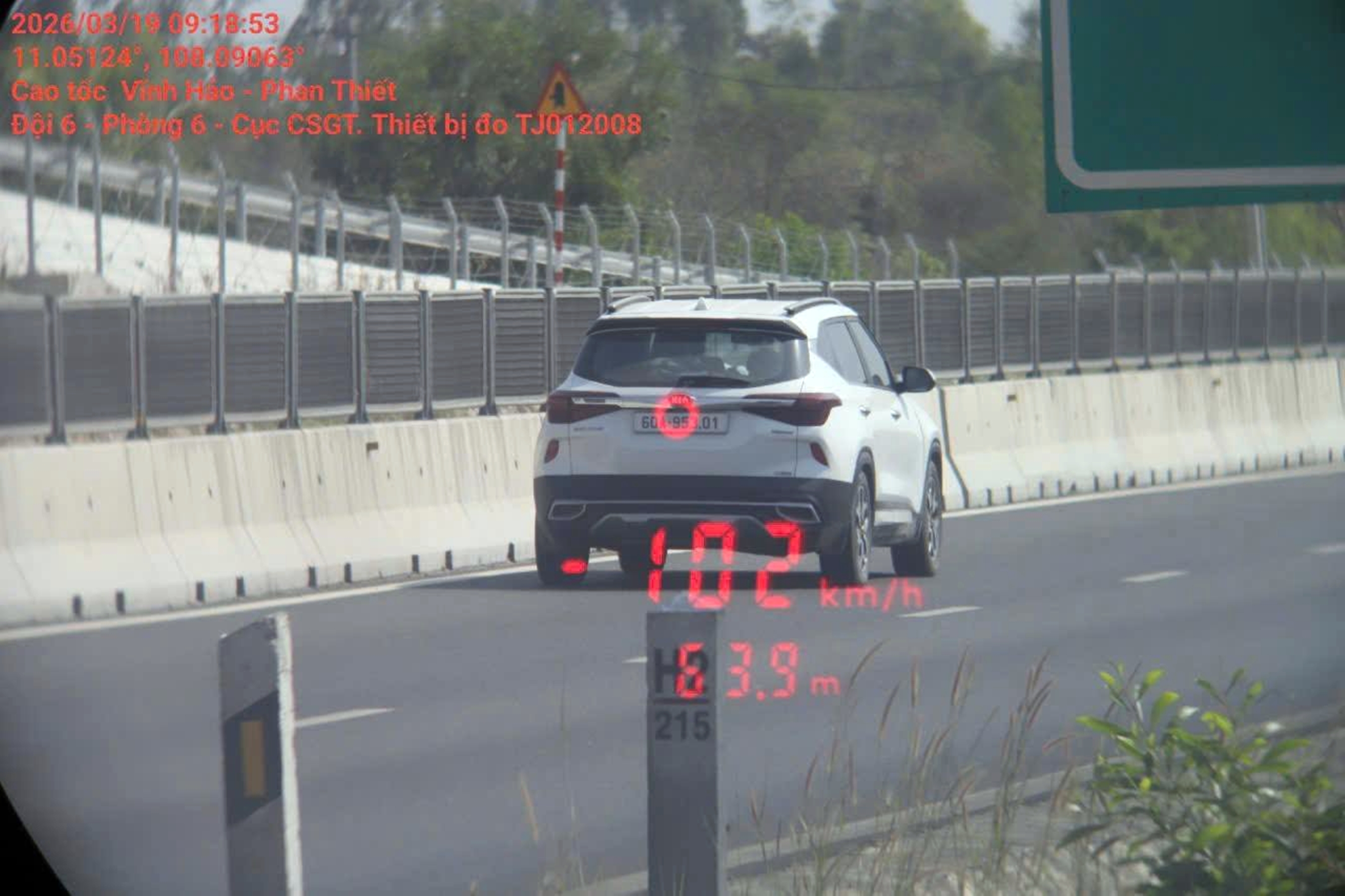 Một phương tiện vi phạm tốc độ trên cao tốc Vĩnh Hảo - Phan Thiết.