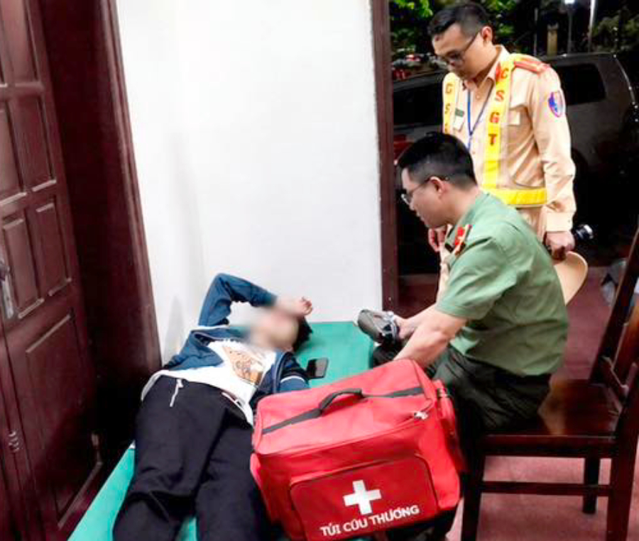 Khoảng 22 giờ đêm 25-4, trong quá trình thực hiện nhiệm vụ bảo đảm an ninh, trật tự tại khu vực Lễ hội Đền Hùng, lực lượng CSGT Công an tỉnh Phú Thọ làm nhiệm vụ tại chốt khu vực đường Lạc Hồng (xã Hy Cương) phát hiện một nam thanh niên có biểu hiện mệt mỏi, chóng mặt, buồn nôn, kiệt sức.