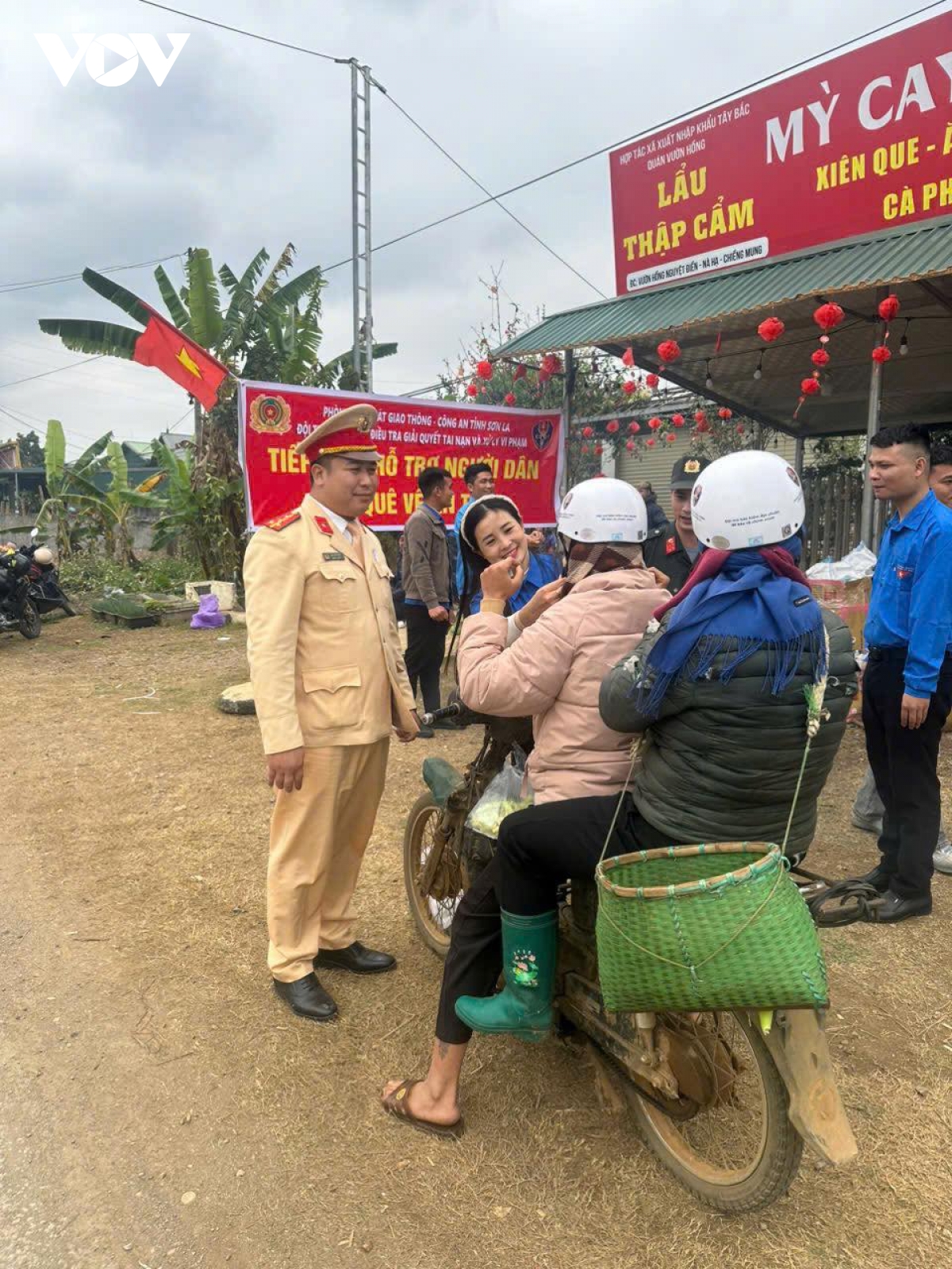Bà con được hỗ trợ mũ bảo hiểm đạt chuẩn