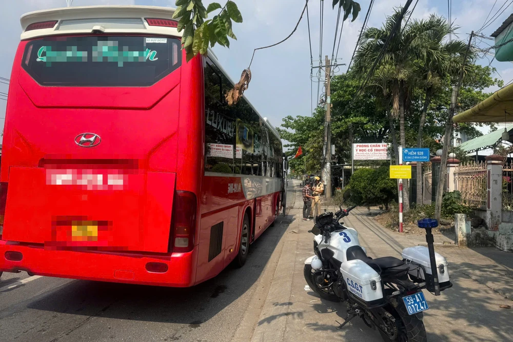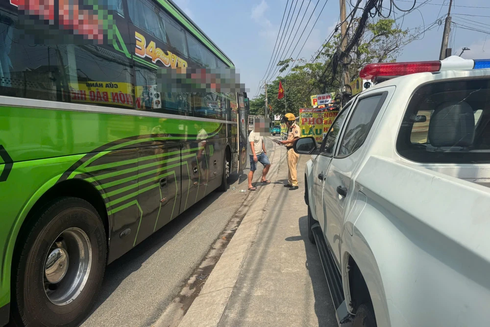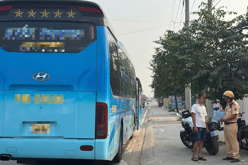 Khoảng 13 giờ 30 phút, tổ công tác làm nhiệm vụ trên Quốc lộ 13, đoạn qua phường Chánh Hiệp, TP.HCM phát hiện xe khách mang biển số 50H-099… do tài xế NQK (42 tuổi, ngụ TP.HCM) điều khiển có dấu hiệu vi phạm nên tiến hành kiểm tra. Qua kiểm tra, lực lượng chức năng xác định tài xế vi phạm lỗi dừng xe không sát theo lề đường phía bên phải theo chiều đi.