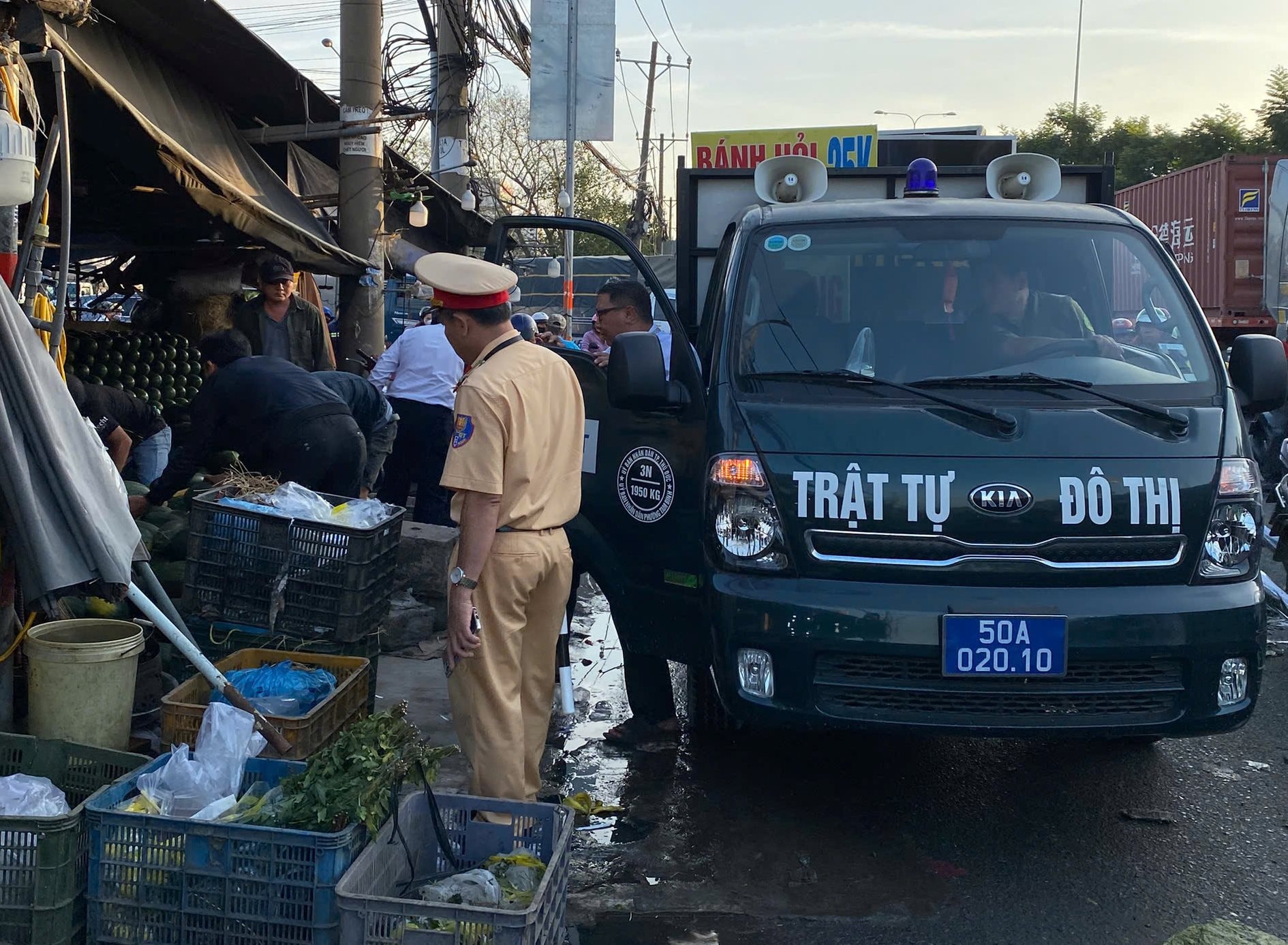 Các tổ công tác do CSGT làm nòng cốt, phối hợp Công an xã, lực lượng tham gia bảo vệ an ninh trật tự tại cơ sở được thành lập để điều tiết giao thông từ xa đối với xe container, xe tải nặng ra vào chợ, hạn chế xung đột với phương tiện cá nhân trong giờ cao điểm.