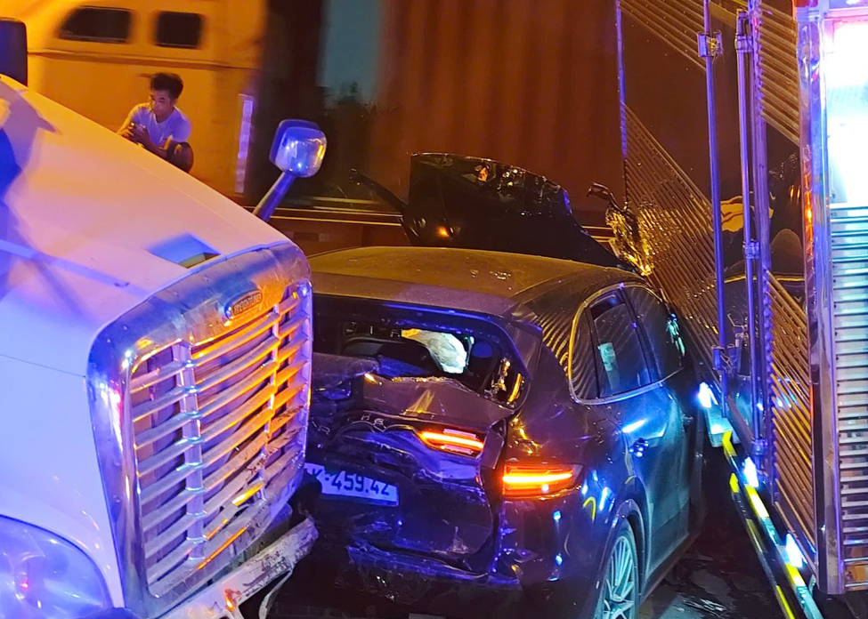 Theo Phòng CSGT Công an TP.HCM, khoảng 20h30 tối 22/4, tại khu vực gần trụ đèn số 1 trên Cầu Phú Mỹ (đường Võ Chí Công, phường Cát Lái, TP.HCM) xảy ra vụ tai nạn giao thông liên hoàn giữa nhiều phương tiện gồm ô tô tải, xe đầu kéo và ô tô con, lưu thông cùng chiều từ Nguyễn Văn Linh đi phường Cát Lái.