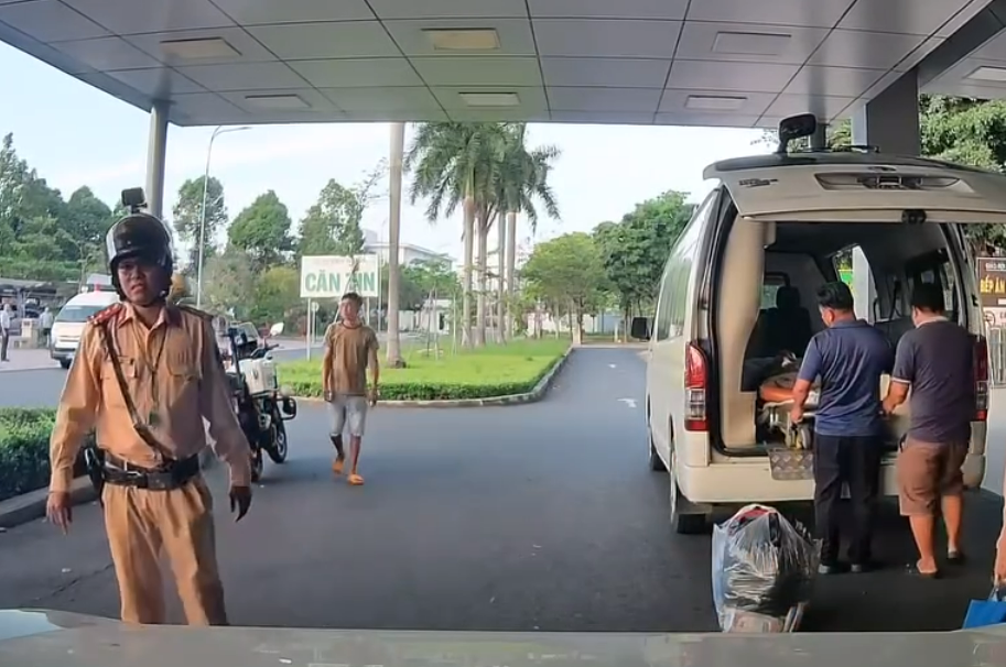 Ngay sau khi nắm tình hình, hai chiến sĩ CSGT TPHCM lập tức sử dụng mô tô chuyên dụng, bật còi và đèn ưu tiên, dẫn đường cho xe chở bệnh nhân vượt quãng đường gần 40km đến Bệnh viện Đa khoa Bà Rịa.