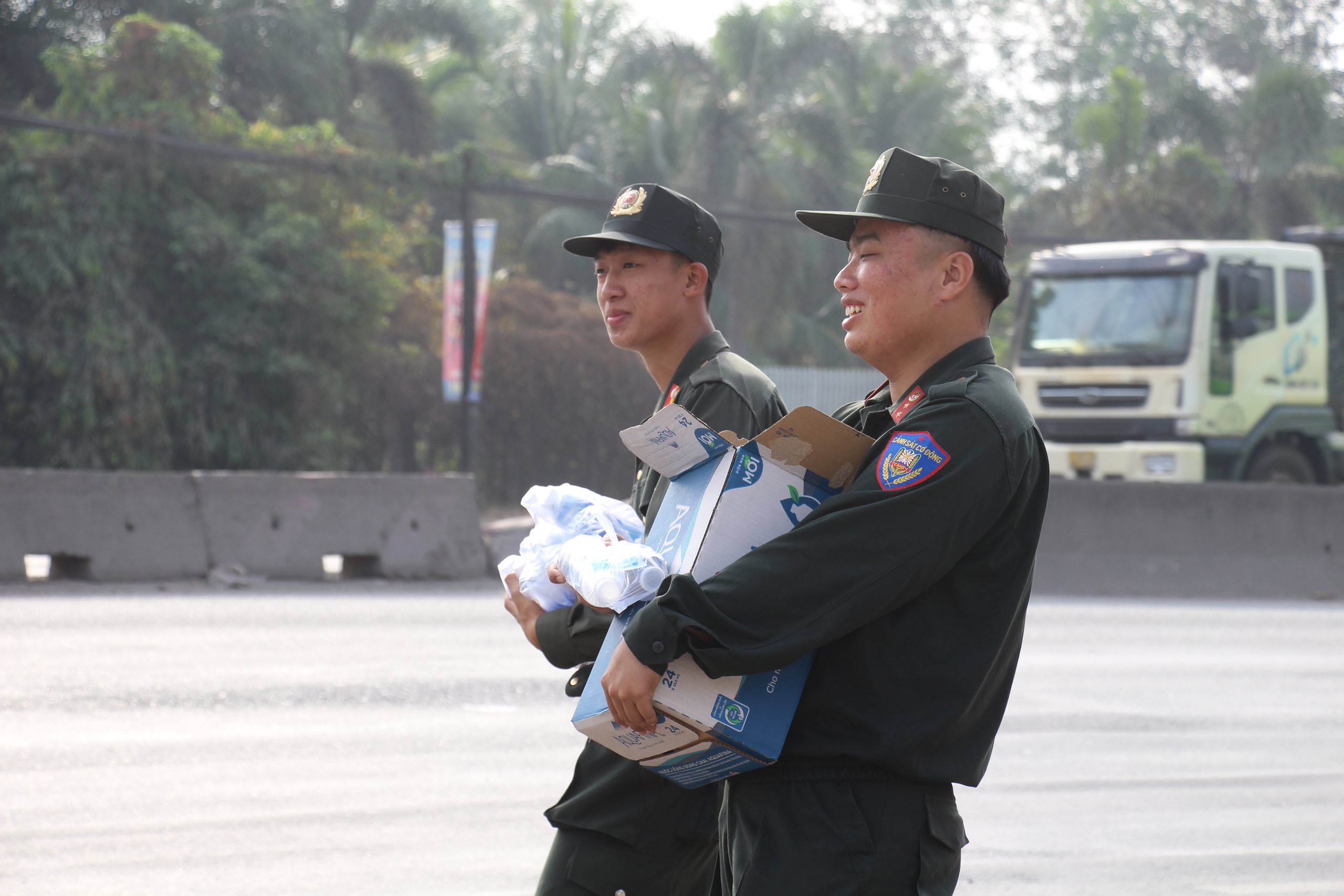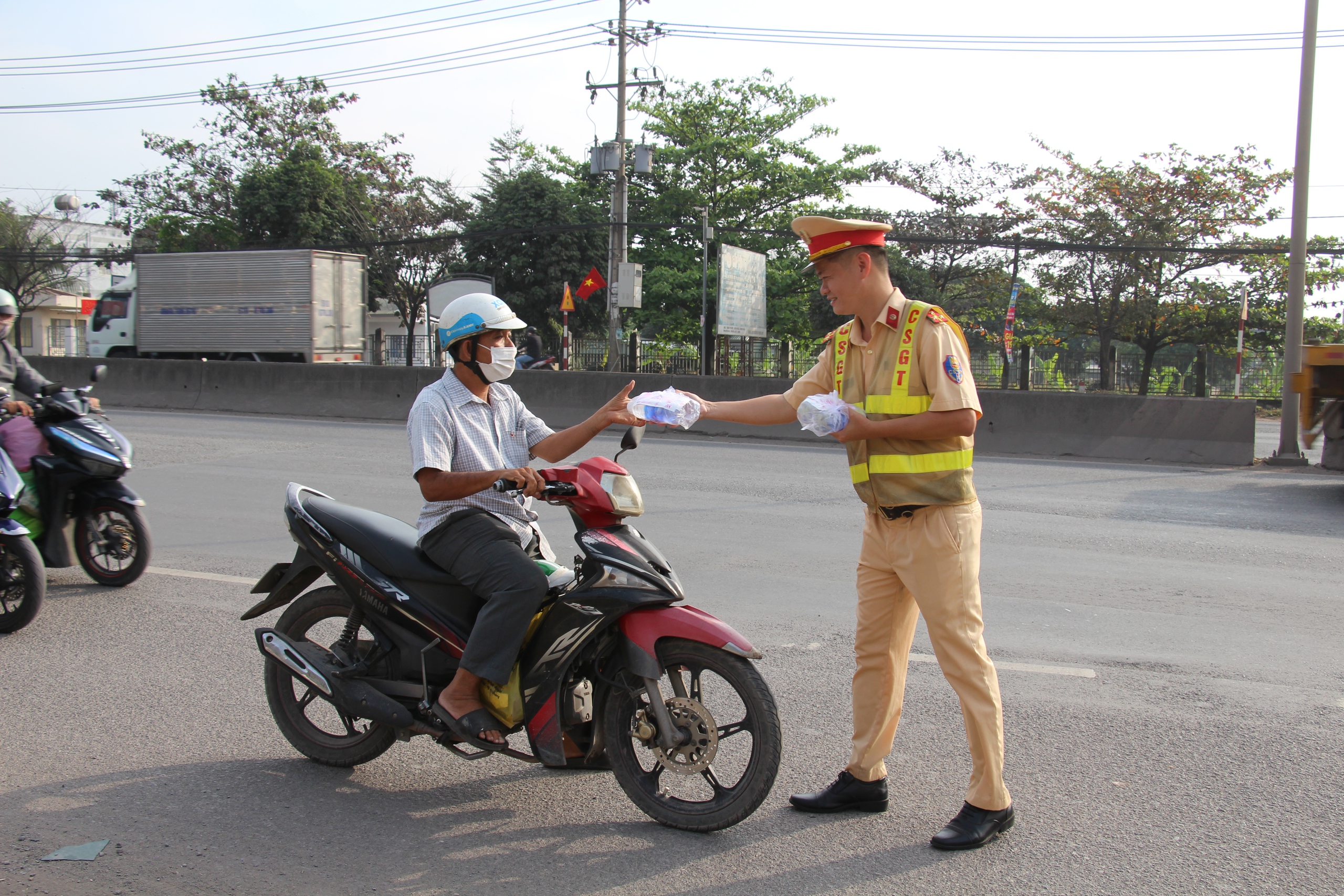 Anh Nguyễn Văn Hoàn, công nhân làm việc tại một khu công nghiệp ở Biên Hòa, chia sẻ: "Tôi chạy xe máy về nhà ở Xuyên Mộc thì được các anh CSGT phát nước và nhắc nhở chạy xe an toàn, tôi thấy rất ấm lòng. Chỉ là chai nước thôi nhưng giữa đường xa như vậy quý lắm".
