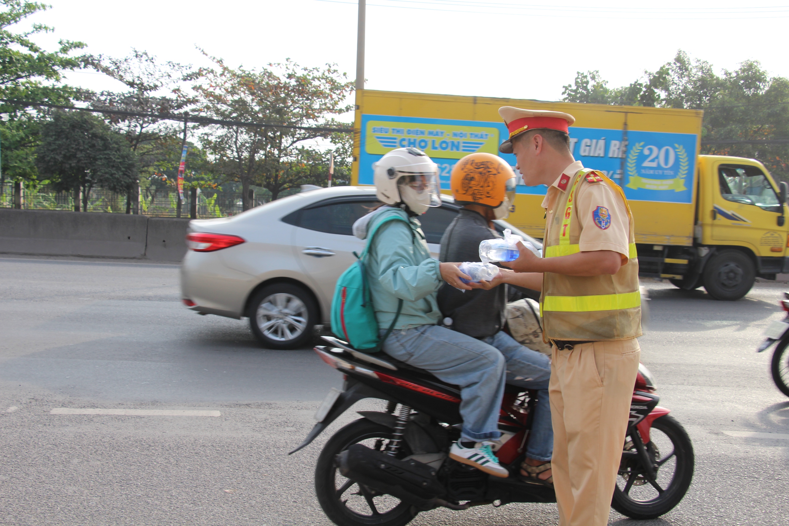 Giữa dòng xe hối hả cuối năm, mỗi chai nước mát trao tay là một lời chúc bình an, mỗi nụ cười động viên là một sự sẻ chia thầm lặng.