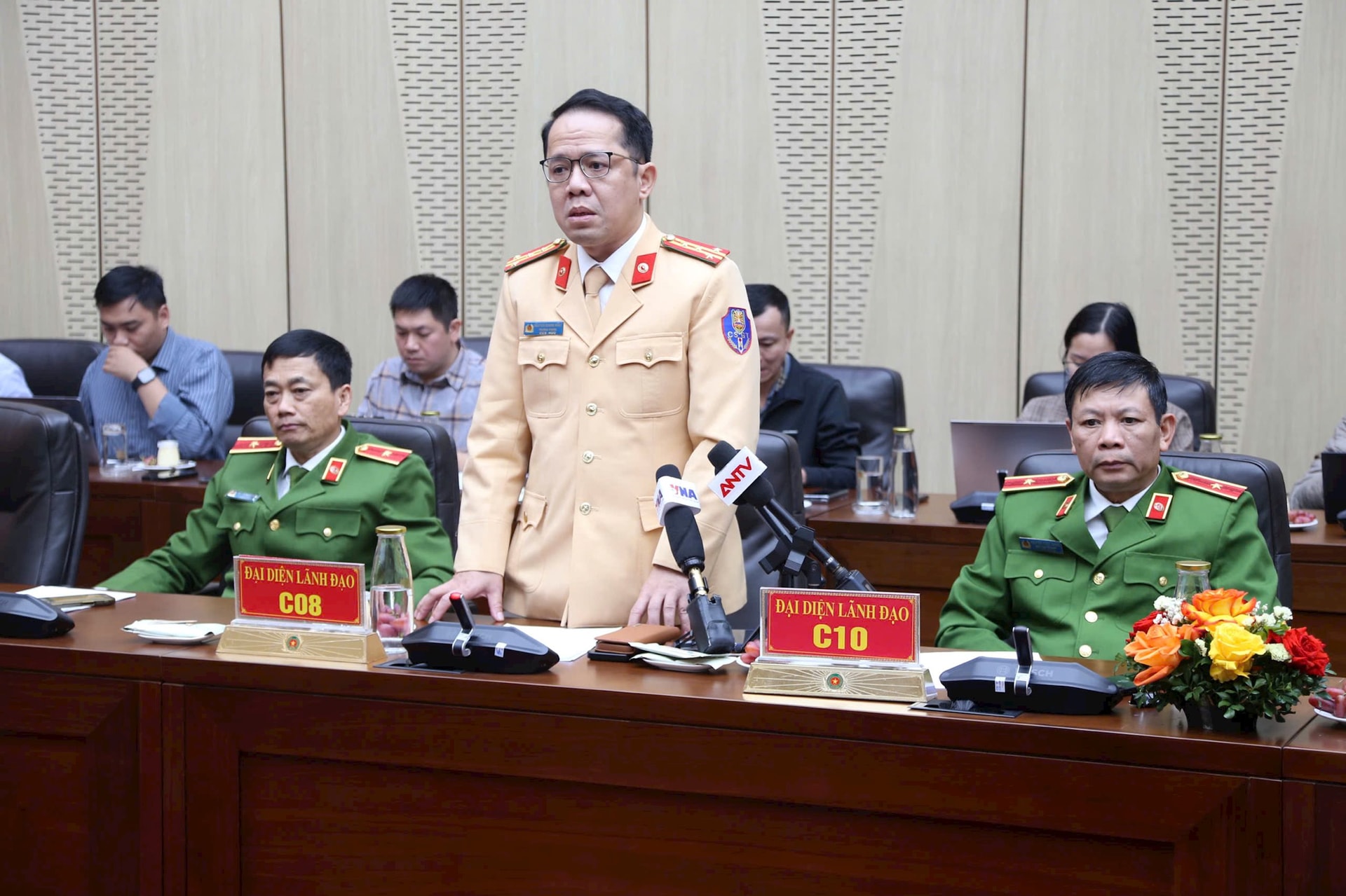 Đại diện Cục CSGT phát biểu tại cuộc họp báo.
