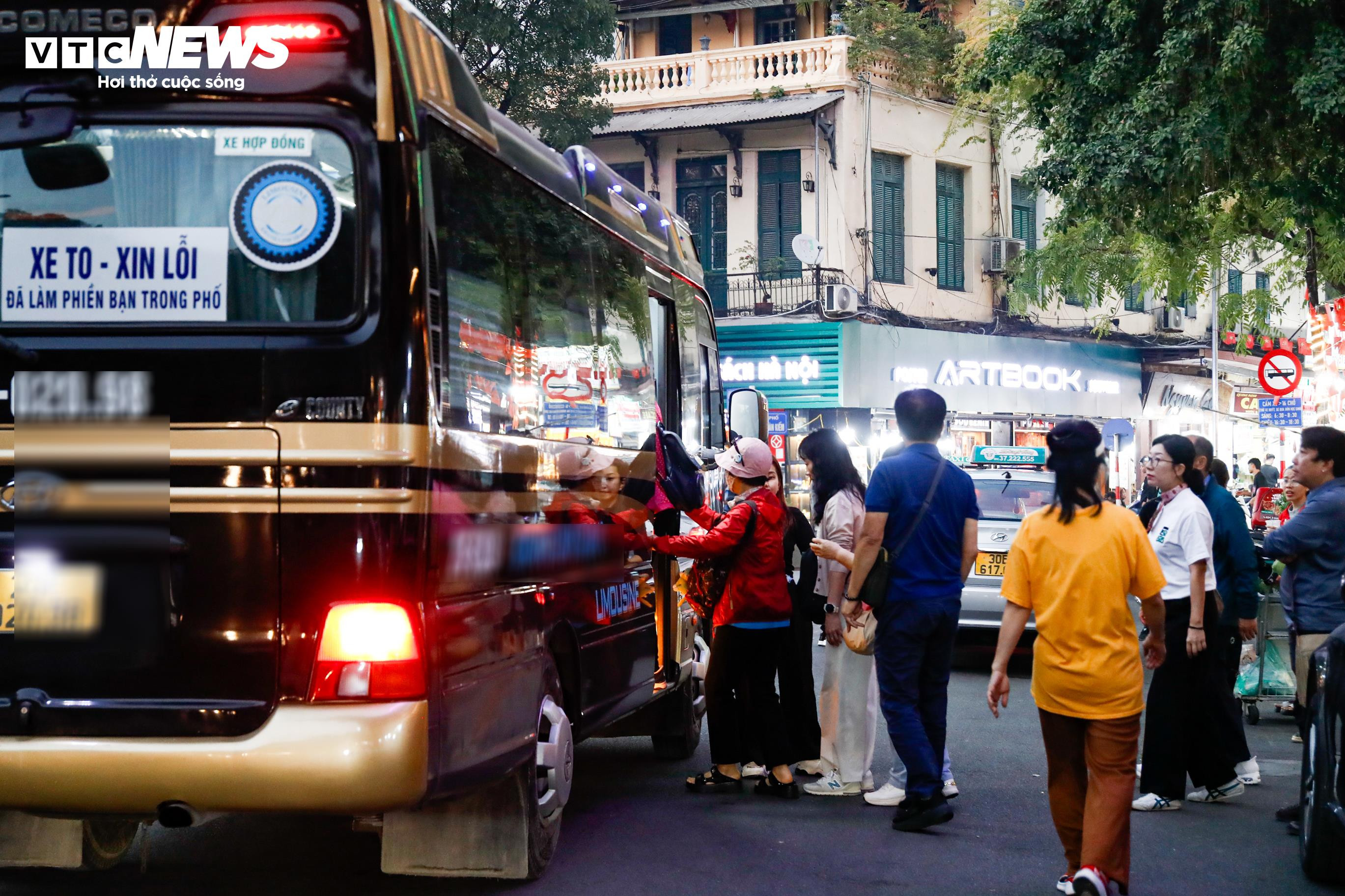 “Hiện nay, việc cấm xe trên 16 chỗ được thực hiện sau công tác điều tra cơ bản và tuyên truyền tới các công ty lữ hành, vận tải, các nhà xe và công ty lữ hành đã thông tin tới lái xe và khách du lịch, hướng dẫn đưa khách ra 6 điểm trung chuyển. Trên các tuyến đường vành đai, xe vẫn lưu hành vào giờ cao điểm nhưng bị cấm dừng đỗ; những lái xe vi phạm đều được lực lượng chức năng thường xuyên kiểm tra và xử lý theo quy định. Ngoài ra, một số xe từ các tỉnh ngoài vào Hà Nội chưa biết, chúng tôi cũng kiêm quyết xử lý và tuyên truyền", Trung tá Nguyễn Thanh Hải thông tin thêm.