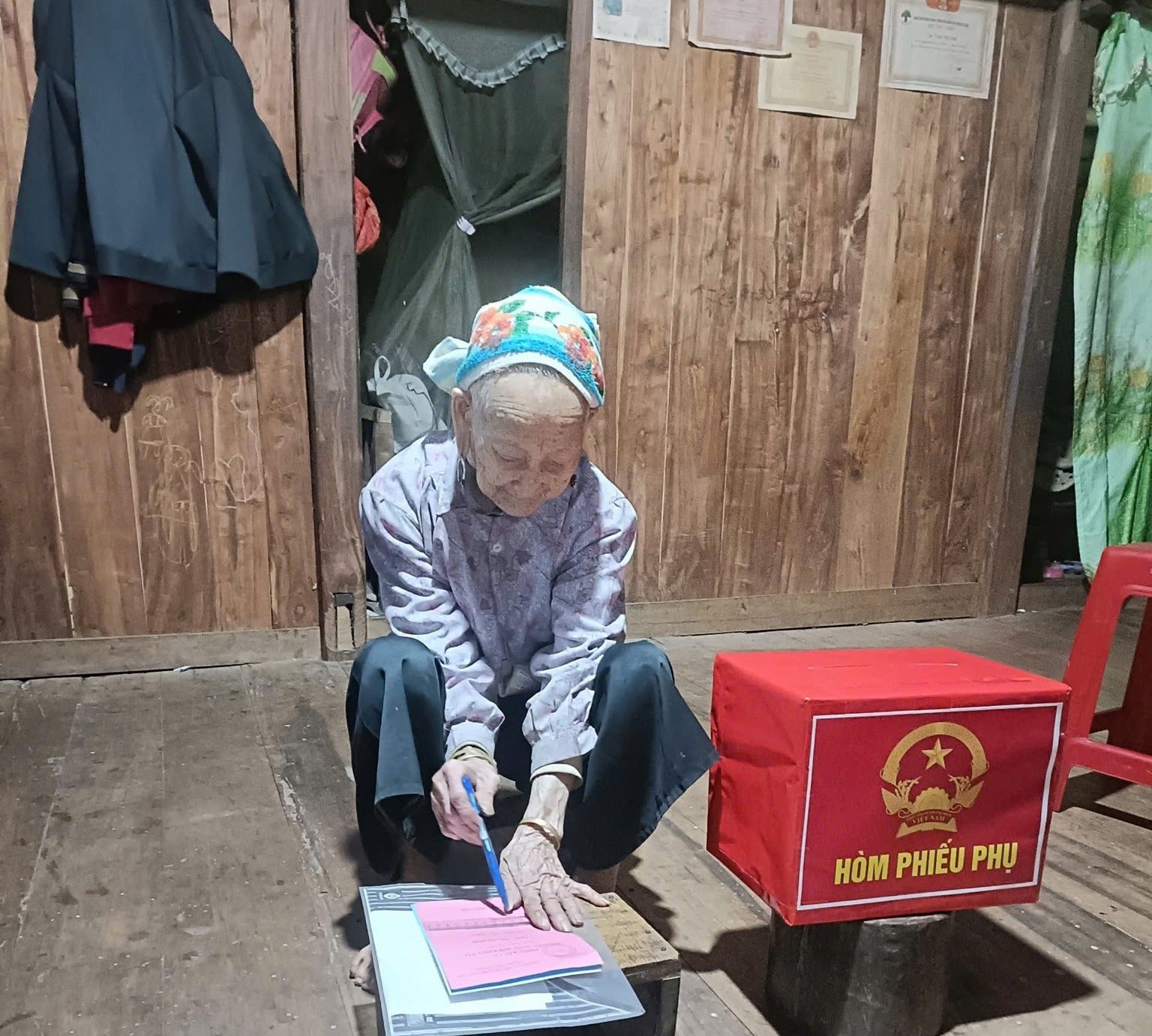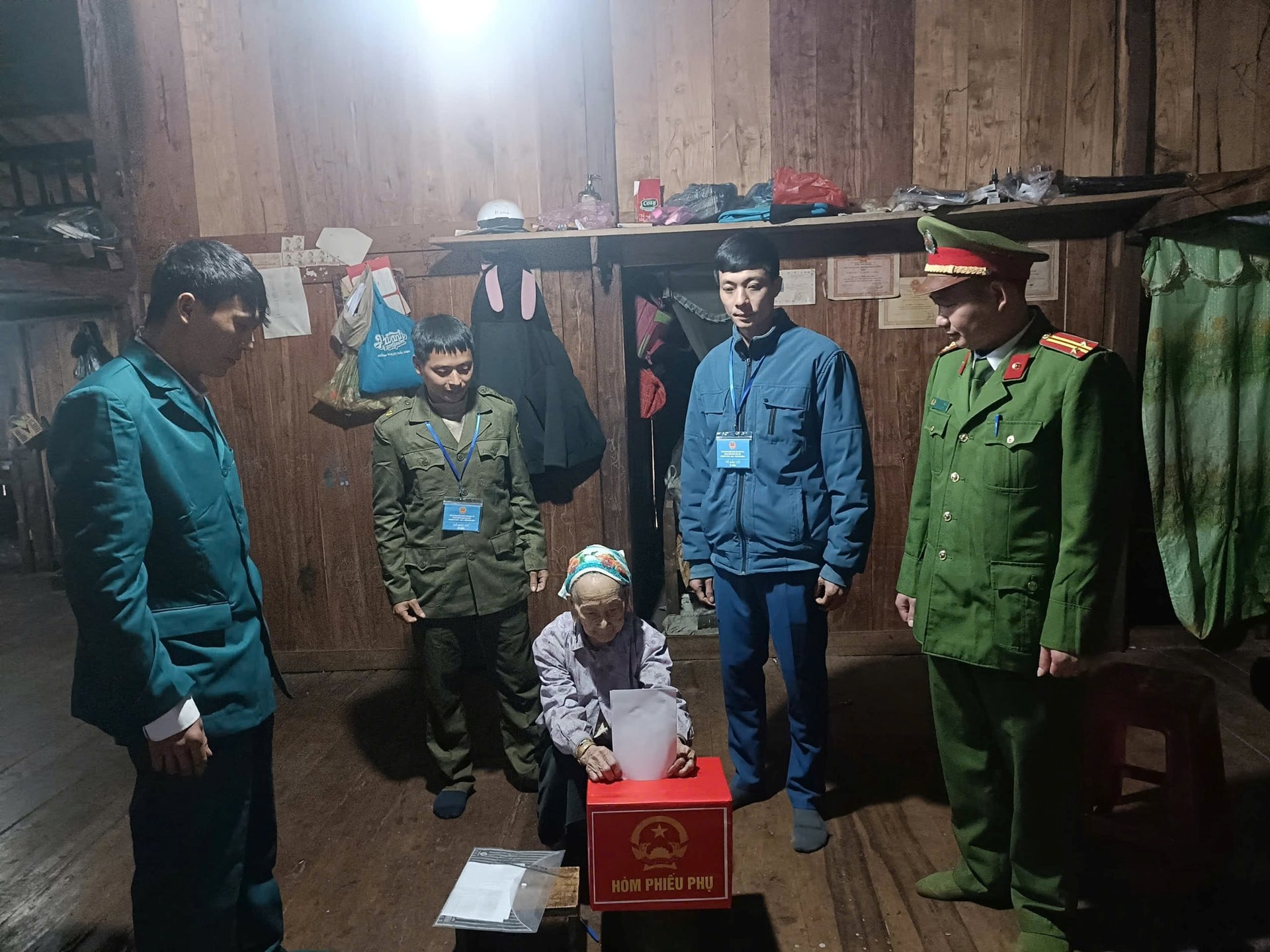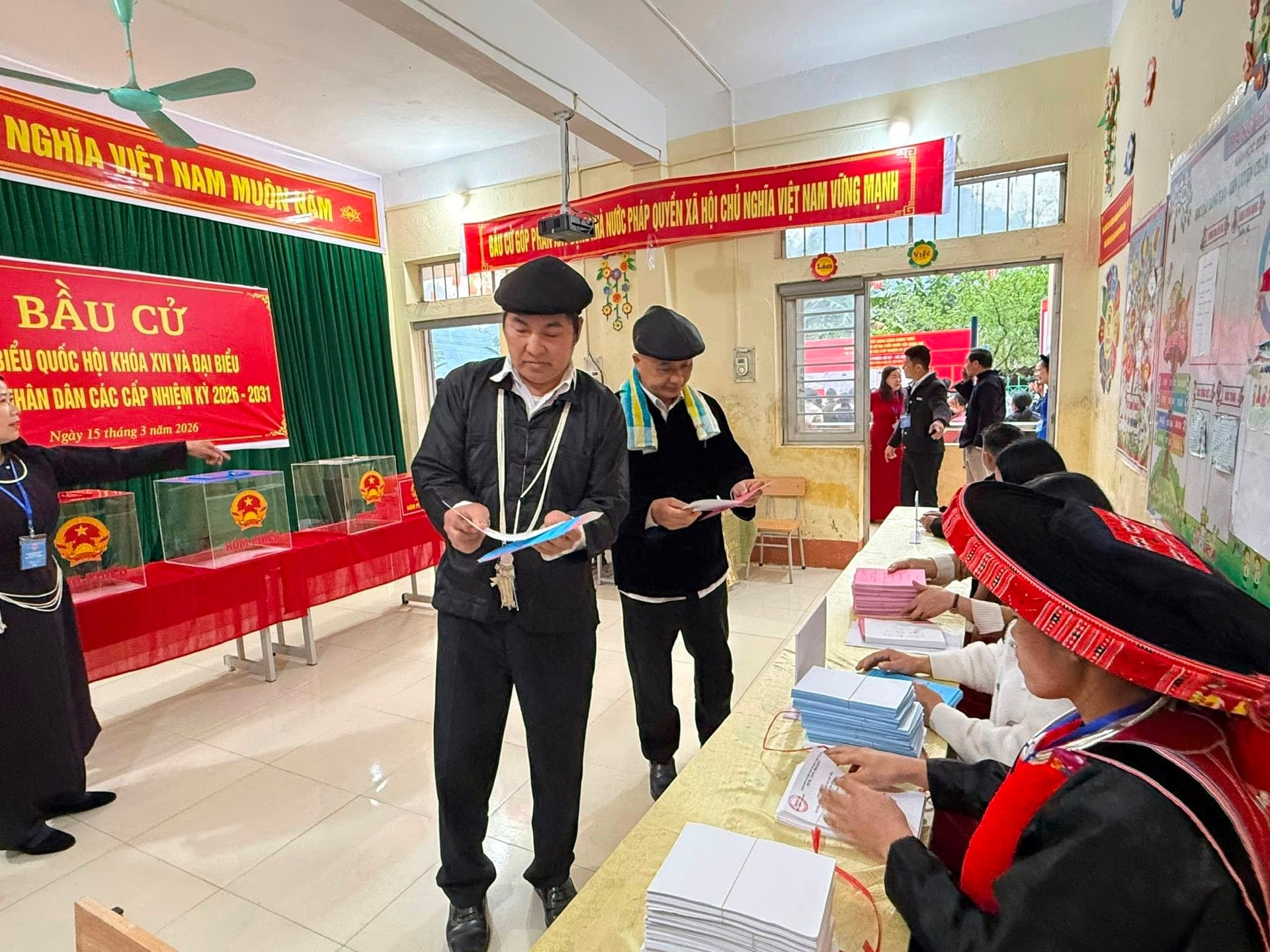 Theo bà Tô Phương Chi, trong ngày 15/3, trên địa bàn xã, các địa điểm bỏ phiếu diễn ra nghiêm túc, an toàn, vui tươi. Tại các địa điểm bỏ phiếu, trên 90% cử tri đã đến bỏ phiếu. Ở các điểm xa, lực lượng Biên phòng, Công an, Quân sự hỗ trợ mang hòm phiếu phụ đến tận các gia đình. Nhờ vậy, cử tri cao tuổi nhất, cụ Triệu Thị Chài (106 tuổi), xóm Khau Dựa, dân tộc Dao đã thực hiện bỏ phiếu bầu cử ngay trong sáng hôm nay.