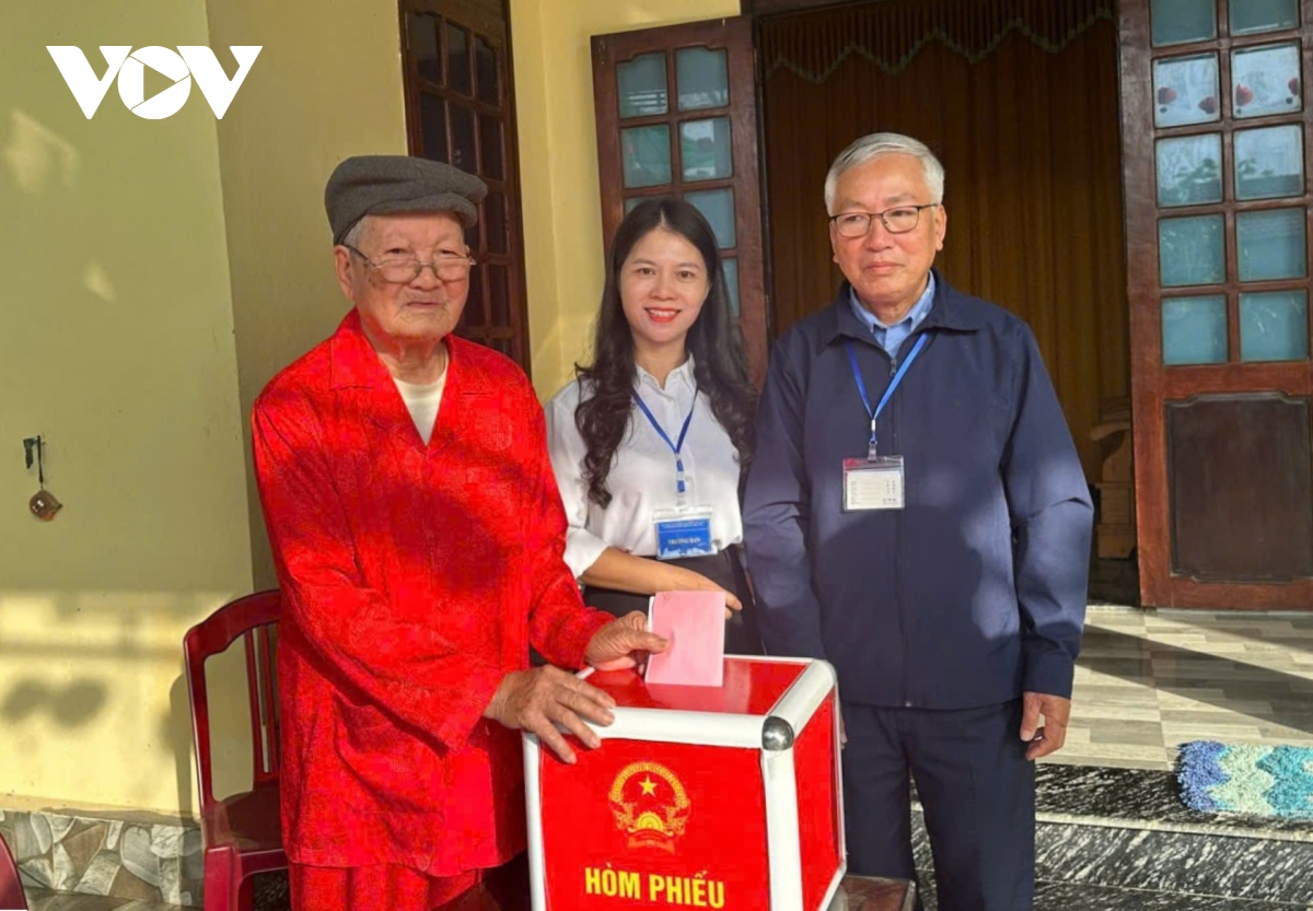 Cụ bà Đặng Thị Lãm, 116 tuổi, trú thôn Thạch Bồ, xã Hòa Vang vì sức khỏe không còn cho phép đến khu vực bỏ phiếu, nhưng khi thùng phiếu được trang trọng mang đến tận nhà, dưới sự hướng dẫn của các thành viên tổ bầu cử, cụ vẫn chậm rãi, tự tay bỏ lá phiếu của mình vào thùng phiếu phụ.