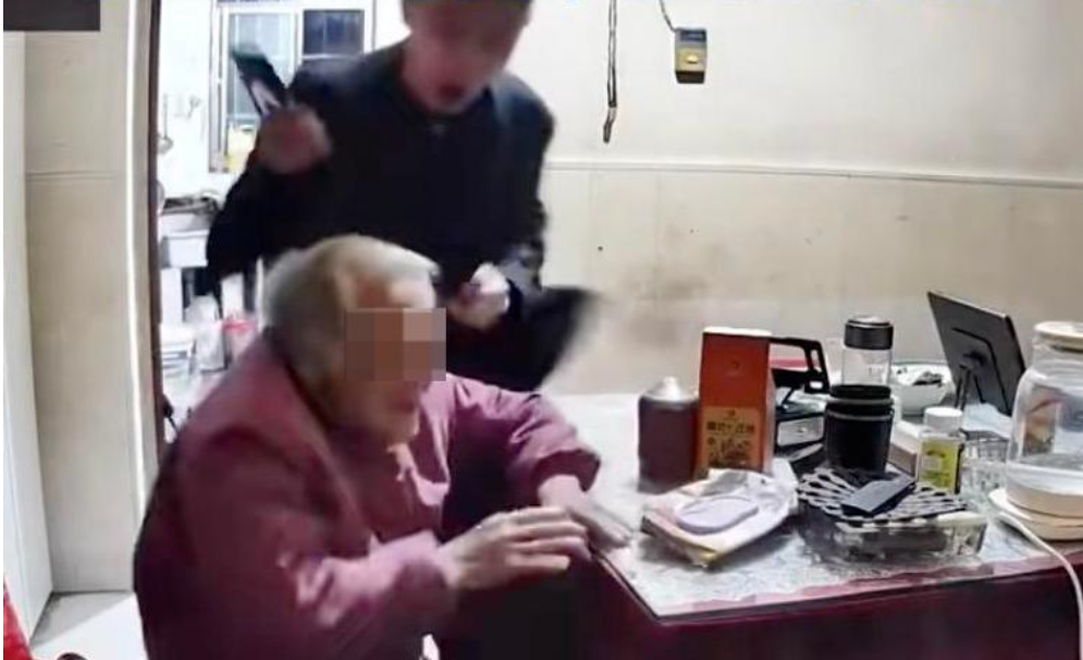 Ảnh chụp màn hình từ đoạn video ông Dương đánh mẹ được lan truyền trên mạng xã hội Trung Quốc. Ảnh: Jimu News