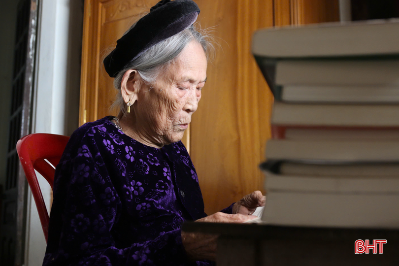 Ở tuổi 96, cụ Nguyễn Thị Thơ (xã Lộc Hà) không có nhu cầu giải trí bằng các thiết bị nghe nhìn. Thứ cụ gắn bó mỗi ngày là những cuốn sách, đặc biệt là sách viết về Bác Hồ, về cách mạng.