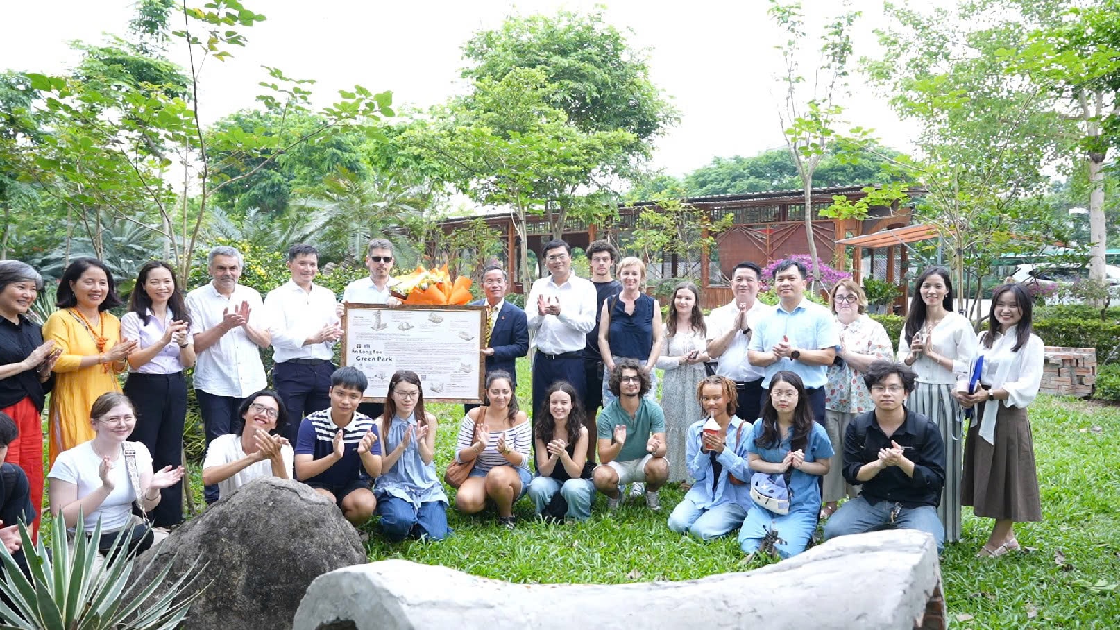 Trường Đại học Kiến trúc Hà Nội trao tặng tác phẩm “Ẩn Long Tọa” cho Công viên Phù Đổng Green Park. Ảnh: Nguyễn Sơn