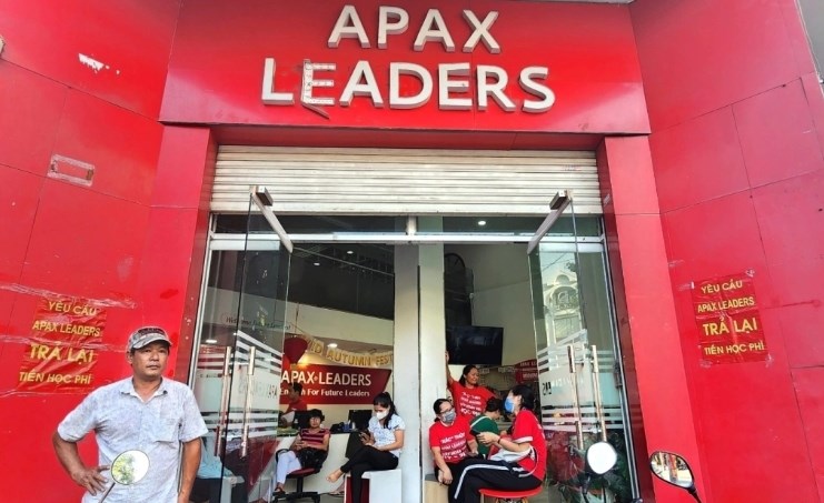 Phụ huynh kéo đến trung tâm Apax Leaders của Shark Thủy đòi tiền nợ học phí năm 2023. Ảnh: Lệ Nguyễn