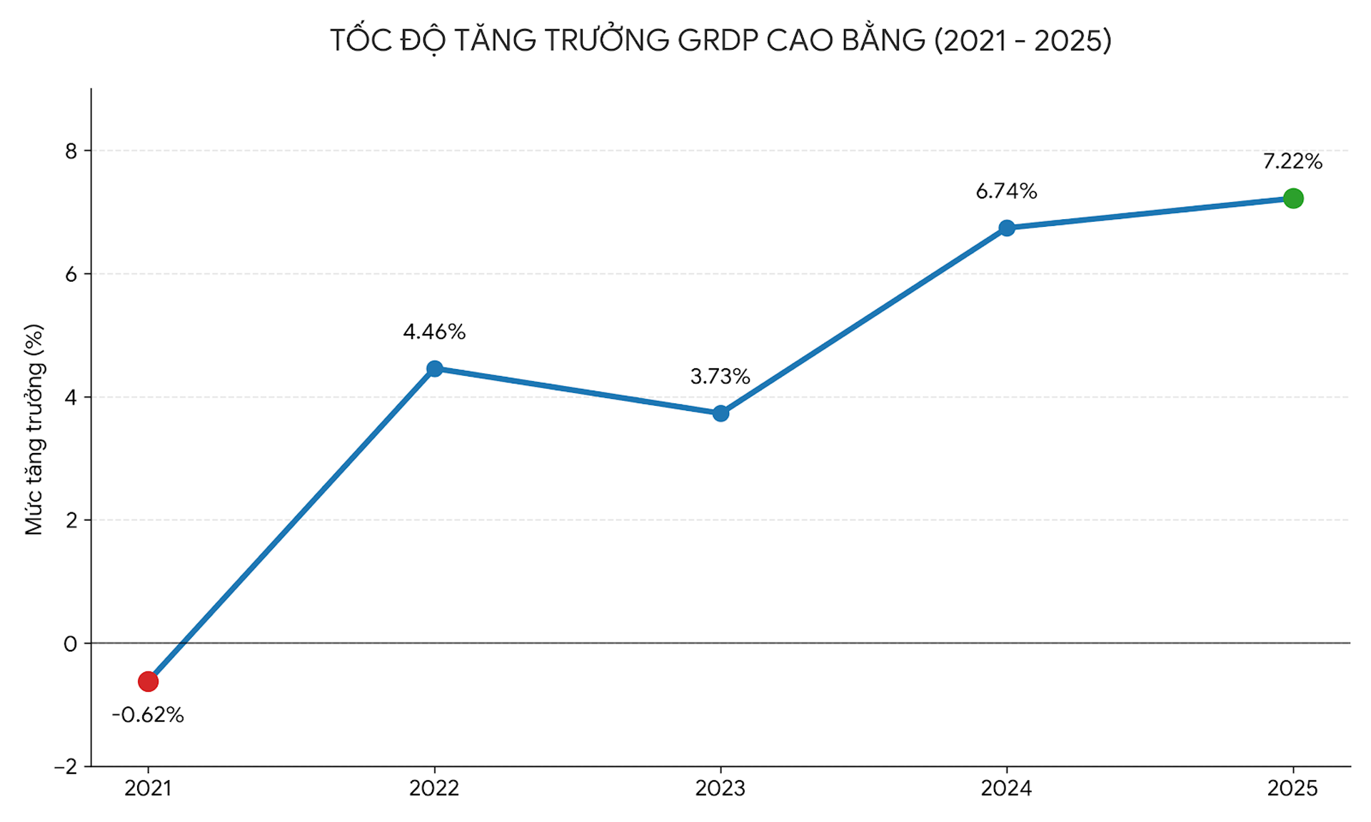 Với quy mô nền kinh tế đạt trên 27.900 tỷ đồng, Cao Bằng đang dần thoát khỏi "cái bóng" của sự trì trệ để xác lập một mặt bằng tăng trưởng mới, cao hơn hẳn mức bình quân 4,27% của giai đoạn đầu nhiệm kỳ.