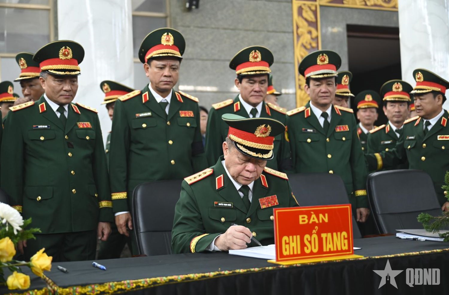 Đại tướng Nguyễn Trọng Nghĩa, Ủy viên Bộ Chính trị, Bí thư Trung ương Đảng, Ủy viên Thường vụ Quân ủy Trung ương, Chủ nhiệm Tổng cục Chính trị ghi sổ tang.