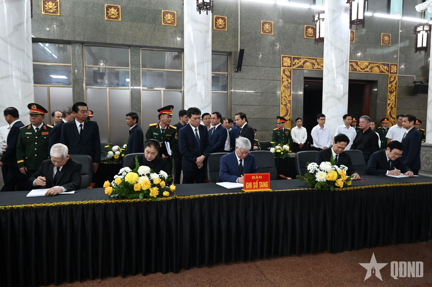 Các đồng chí lãnh đạo, nguyên lãnh đạo Đảng, Nhà nước ghi sổ tang.