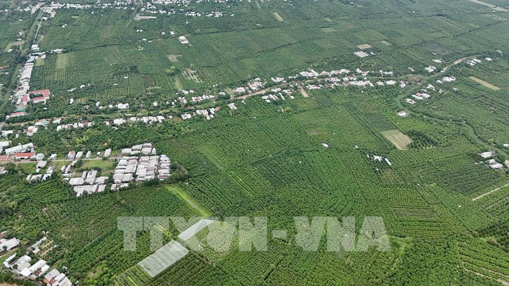 Xã Cù Lao Giêng (An Giang) - vùng đất cù lao giữa dòng sông Tiền nổi tiếng với xoài tượng da xanh xuất khẩu. Ảnh: Thanh Sang - TTXVN