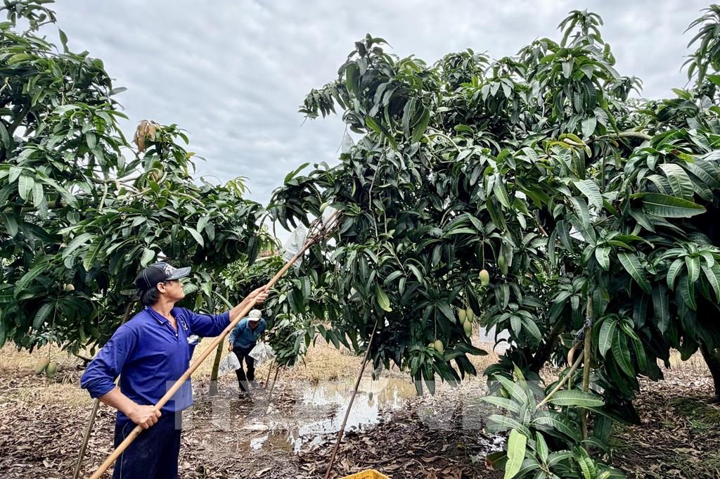 Nông dân xã Cù Lao Giêng, tỉnh An Giang thu hoạch xoài. Ảnh: Thanh Sang - TTXVN