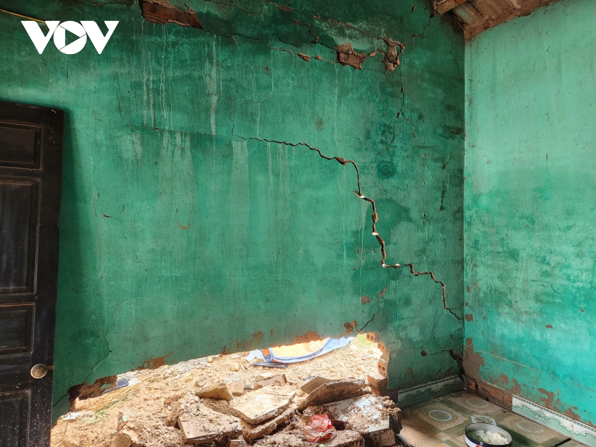 Những mảng tường bếp nứt vỡ của gia đình ông Ba bị vỡ