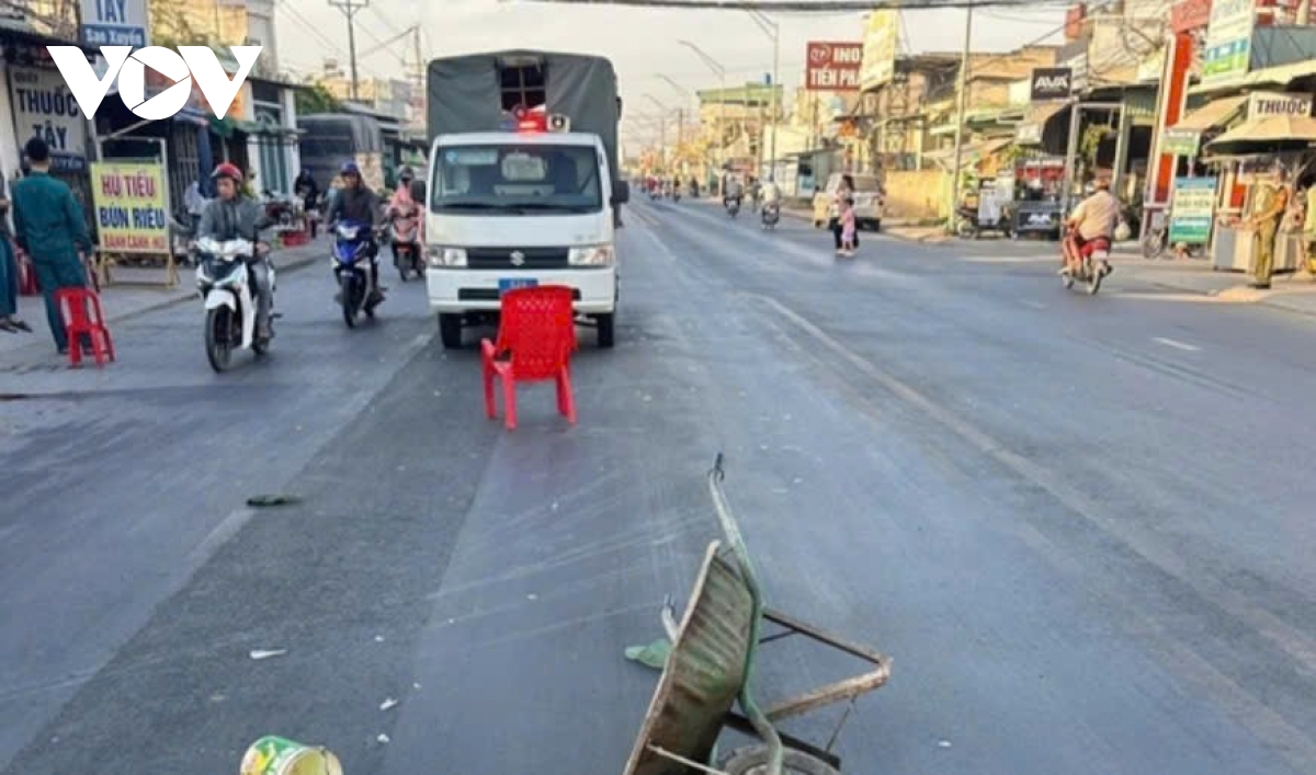 Theo thông tin ban đầu, ông N.V.P. (76 tuổi, ngụ xã Mỹ Hạnh) đang đẩy xe rùa di chuyển từ hướng cống Cầu Bông về phía vòng xoay Tua Một. Khi băng qua đường, ông P. va chạm với ô tô 7 chỗ mang biển số 62LD-005xx.