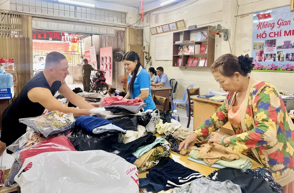 “Chúng tôi đã nhắn bà con sắp xếp quần áo theo từng nhóm: trẻ em, phụ nữ, nam giới… để khi chuyển đến chỉ việc tiếp nhận. Nhưng khi hàng về, khu phố vẫn phải phân loại thêm để bảo đảm gọn nhất” - ông Phúc nói.
