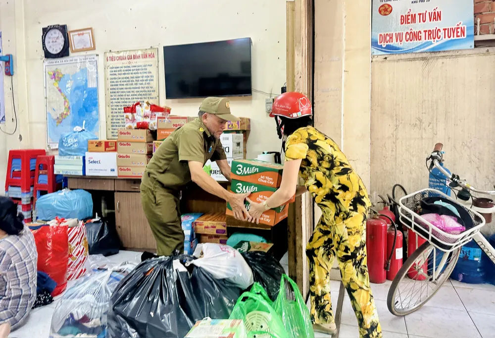 Những ngày này, khắp TP.HCM, từ ga metro tuyến số 1, trụ sở phường/xã cho đến từng điểm tập kết ở mỗi khu phố, dòng người mang hàng cứu trợ vẫn đều đặn đổ về từ sáng sớm đến tận tối muộn với tấm lòng hướng về bà con vùng lũ miền Trung.