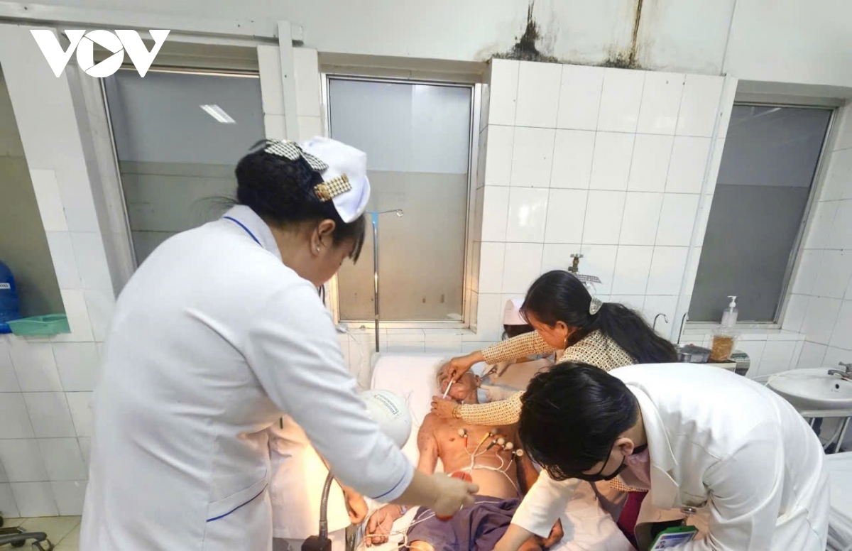 Các bác sĩ bệnh viện đa khoa khu vực Cai Lậy tích cực điều trị ông lão bị đàn ong đốt.