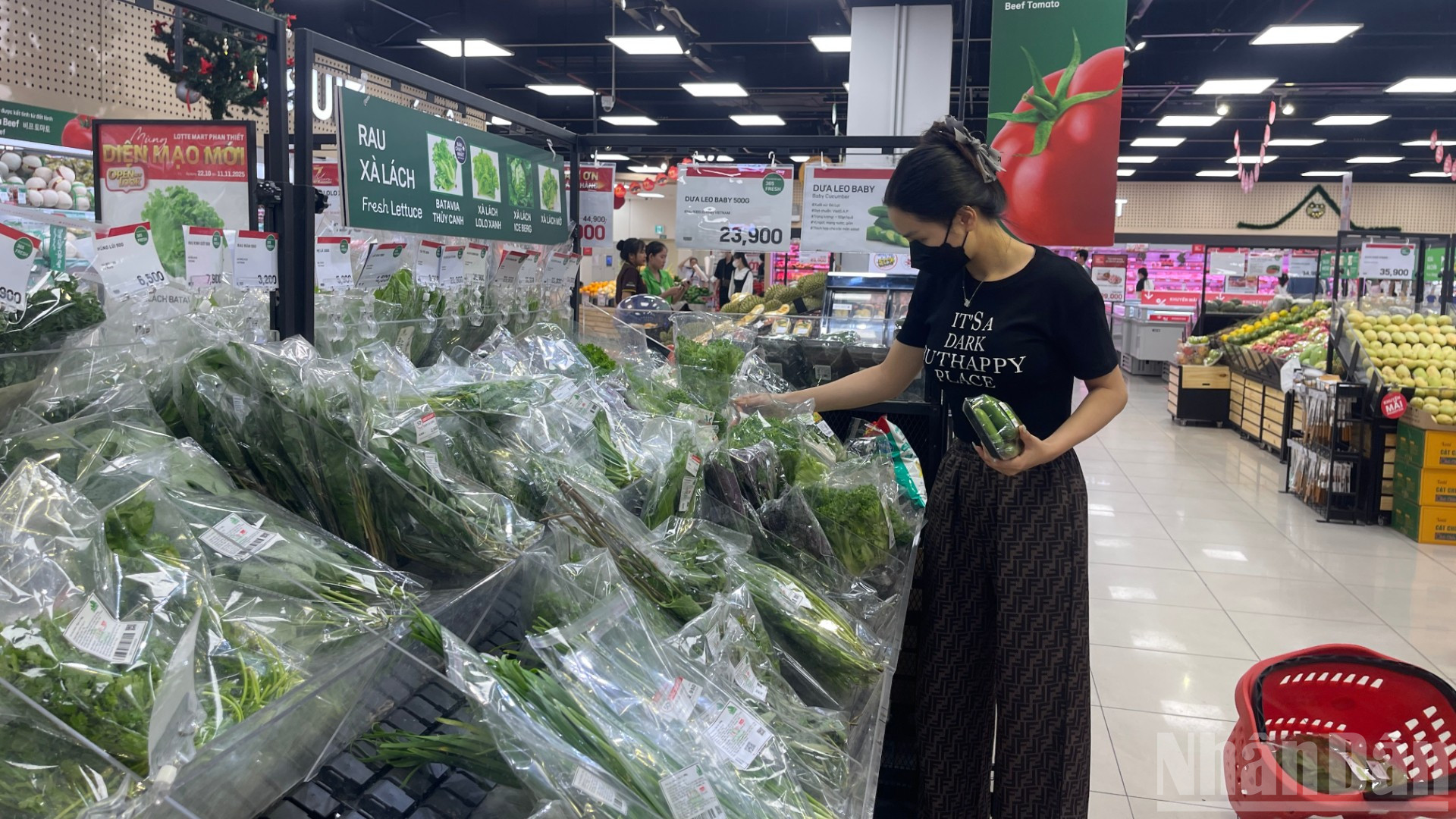 Người tiêu dùng đang lựa mua rau thơm trong Lotte Mart Phan Thiết.
