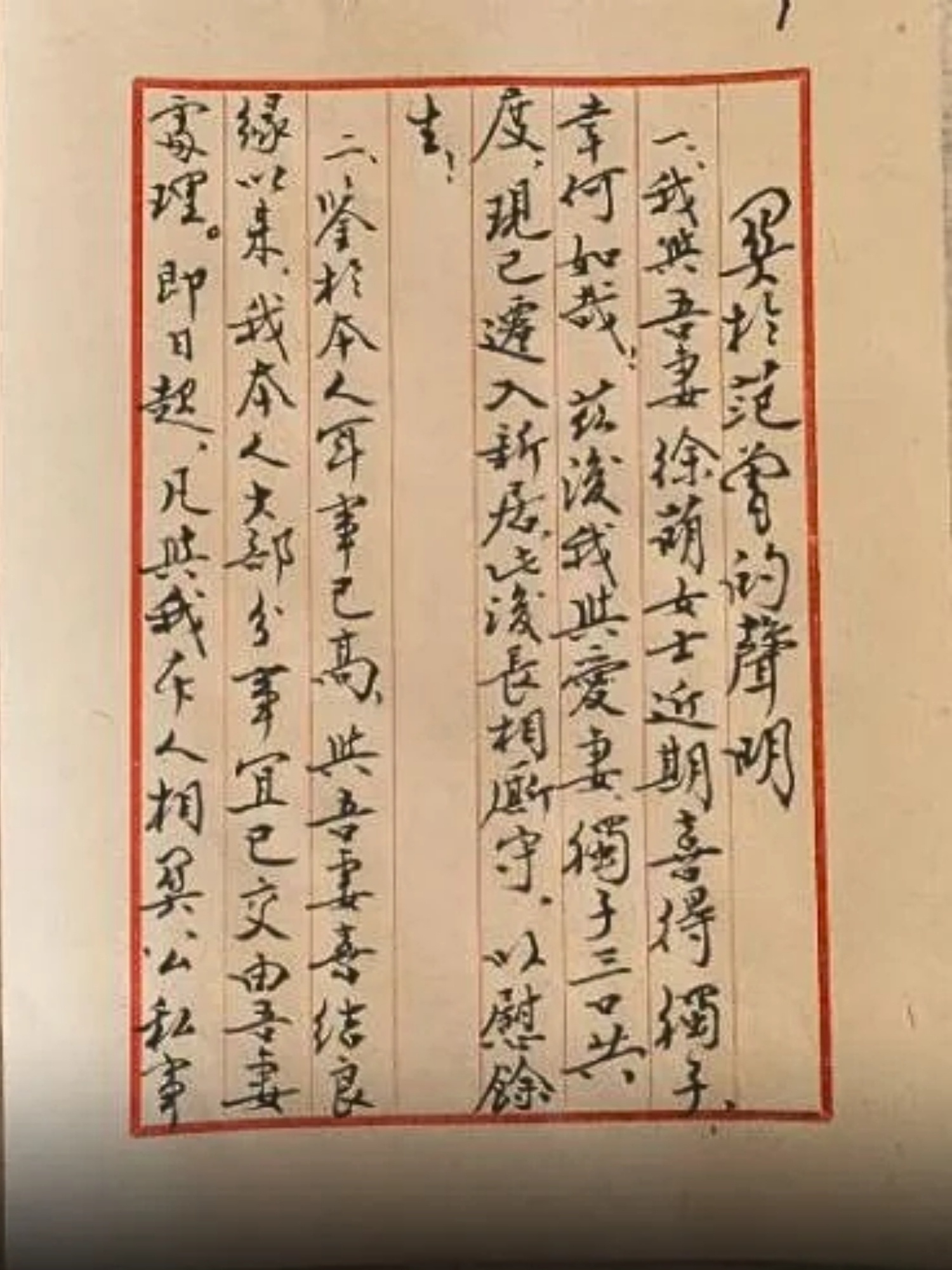 Bức thư pháp công bố có con với vợ thứ tư kém 50 tuổi. Ảnh: Weibo.