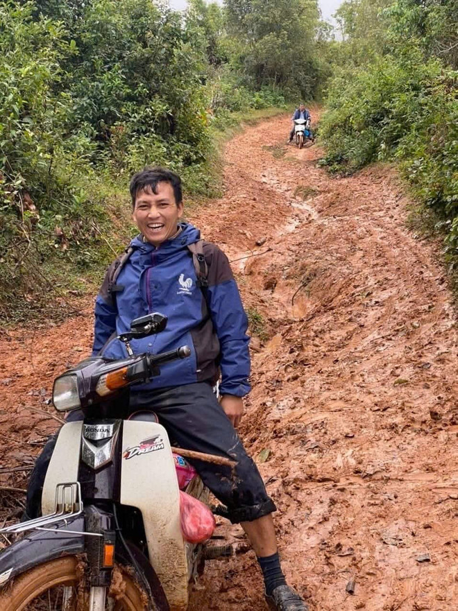 Thầy Hoàng Văn Hải trên đường đến trường. Dù nhiều vất vả, thầy vẫn luôn lạc quan bởi phía cuối con đường là những học trò thân yêu đang mong đợi. (Ảnh: NVCC)