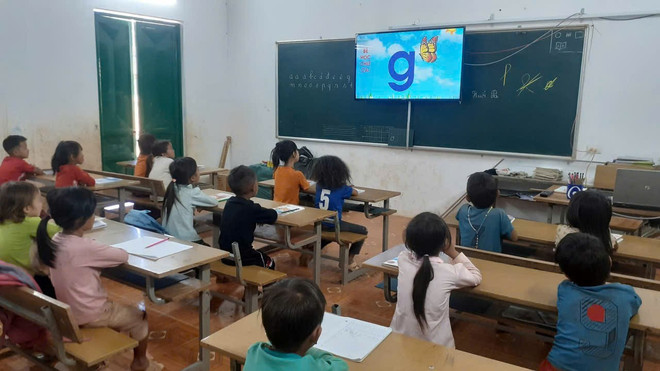 Học sinh của thầy Hải trong học tiếng Việt. (Ảnh: NVCC)