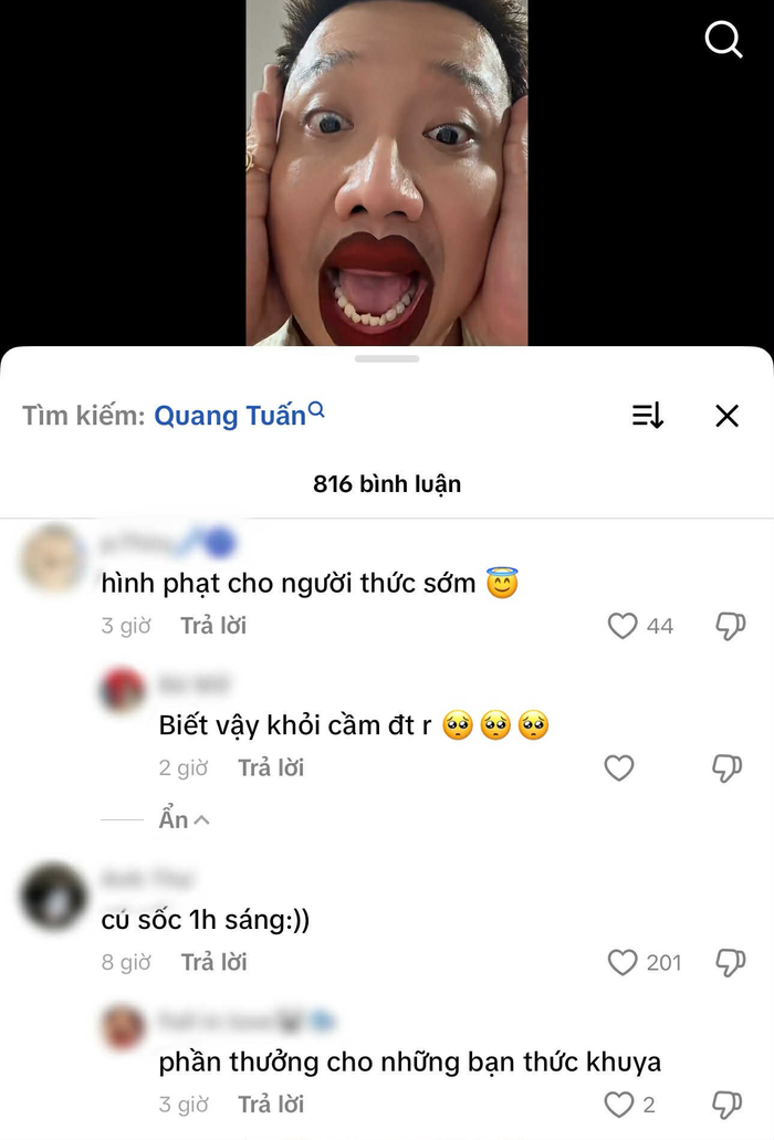 Phía dưới phần bình luận, hàng loạt phản ứng hài hước tràn ngập: "Hình phạt cho ai thức sớm đây rồi!", "Cú sốc 1h sáng thật sự", "Biết vậy khỏi cầm điện thoại lúc nửa đêm luôn".